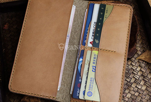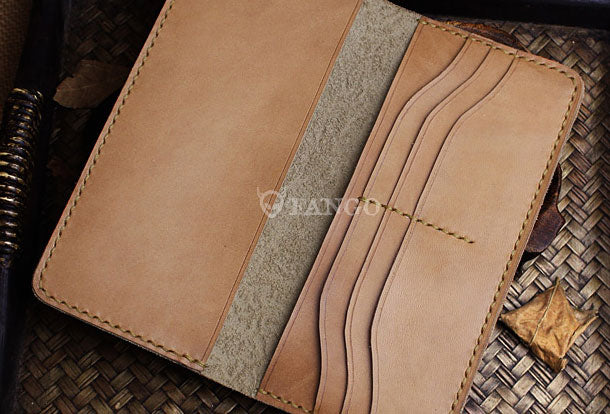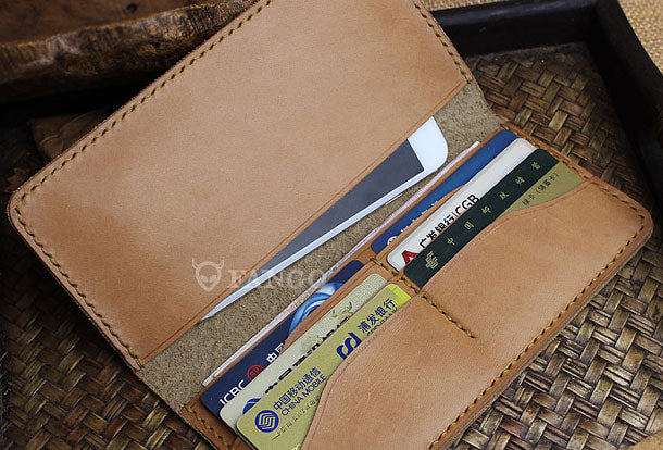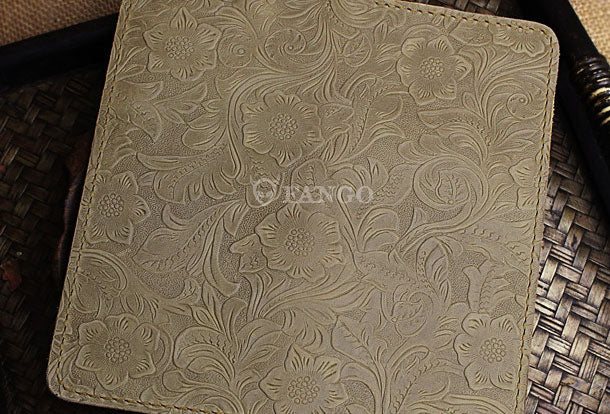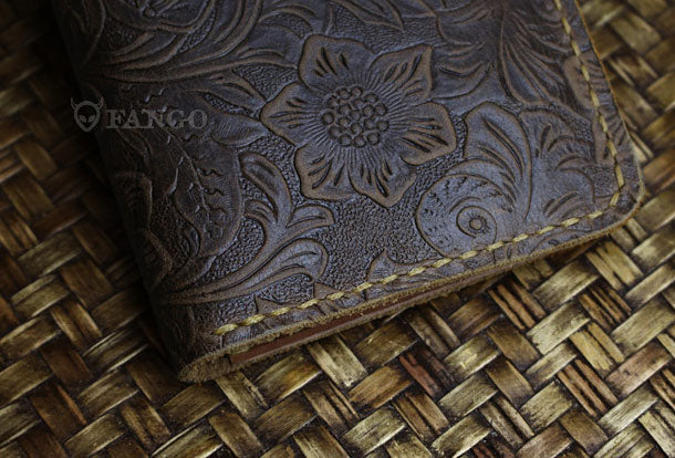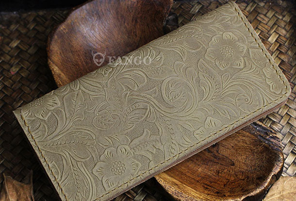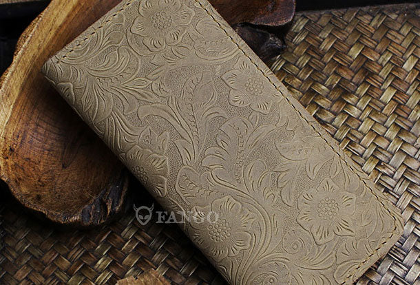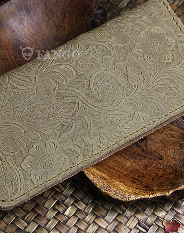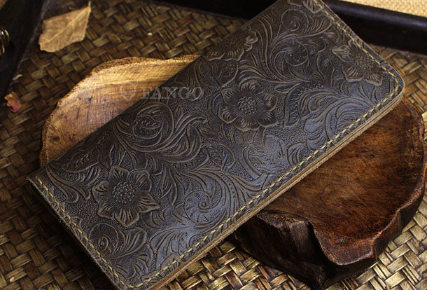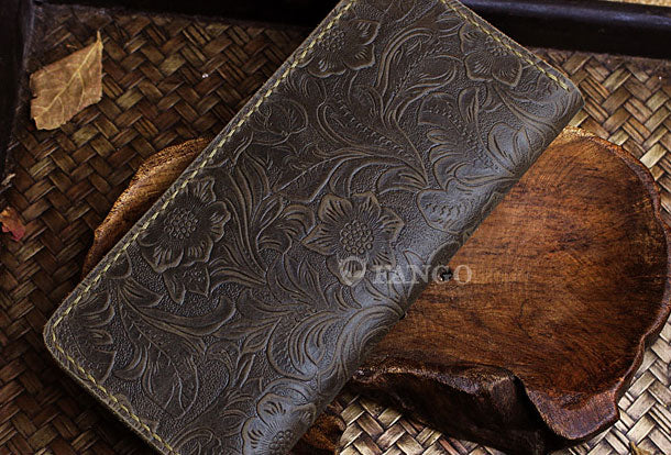 Handmade long leather wallet floral leather clutch wallet for women men