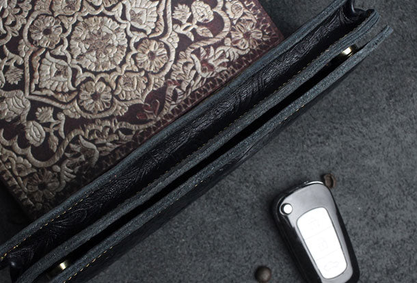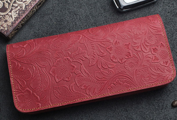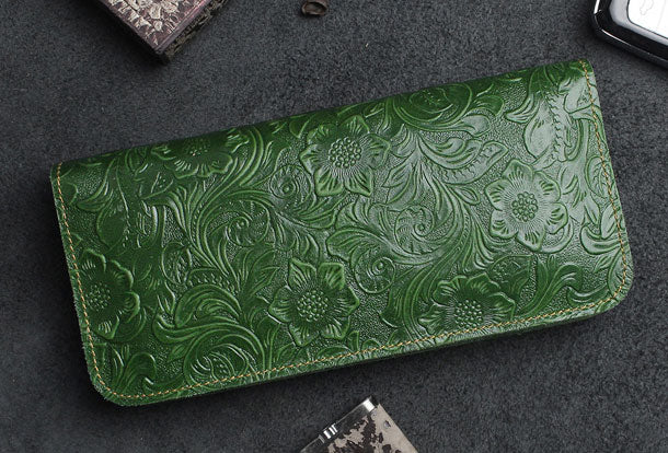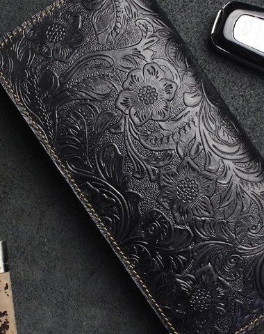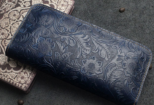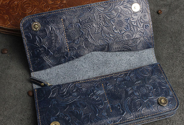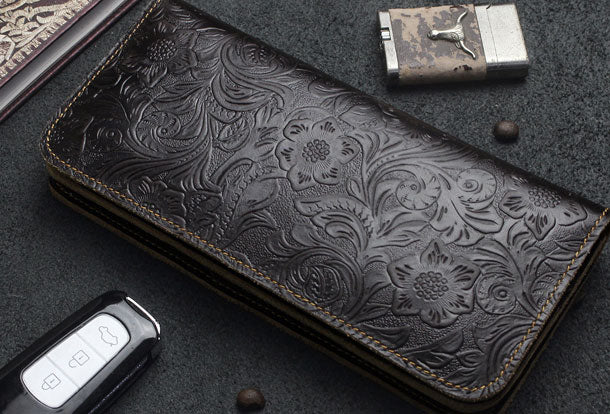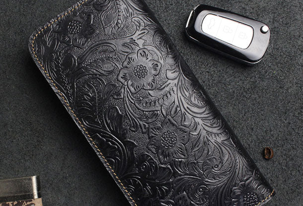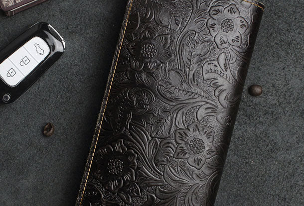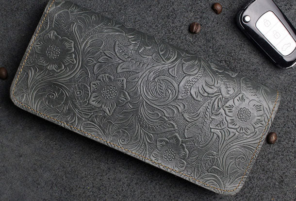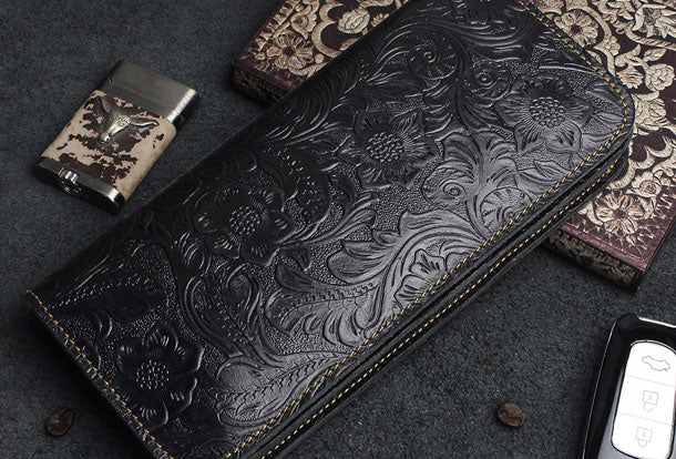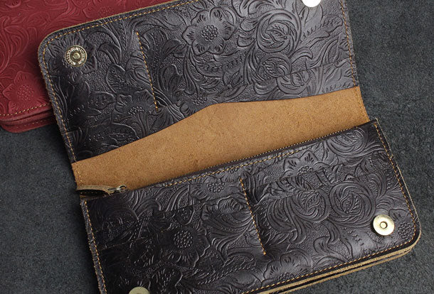 Design: Handmade Long Leather Wallet Trifold Floral Leather Clutch Wallet For Men Women