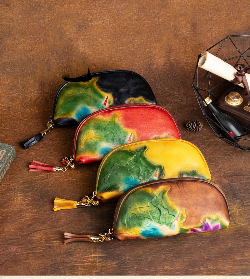 Style: Handmade Lotus Flower Leather Wristlet Wallet Womens Zip Around Wallets Flowers Ladies Zipper Clutch Wallet for Women