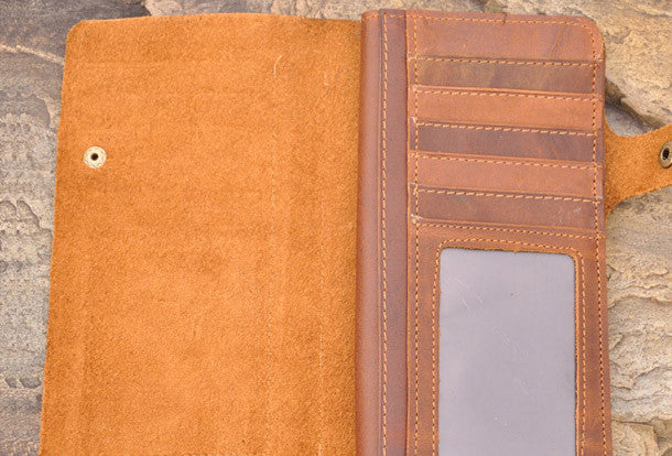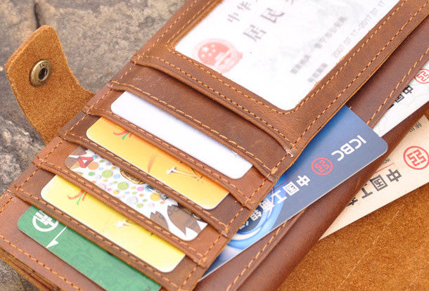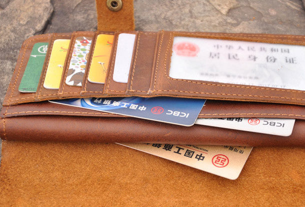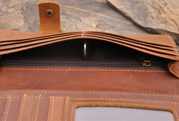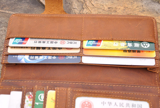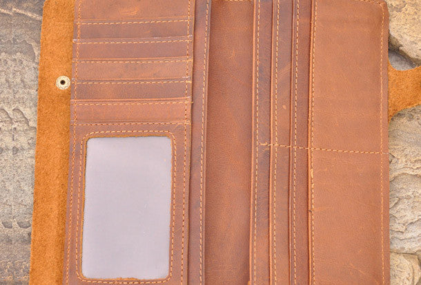 This is Handmade men leather Vintage brown trifold wallet men long wallet purse clutch.The wallet is trifold,color is brown.There are 3?full size bill slots/holders, 16 ID/credit card slots/holders,2 photo?holders.
