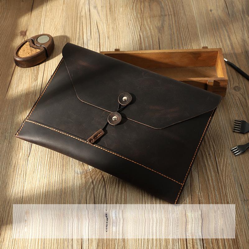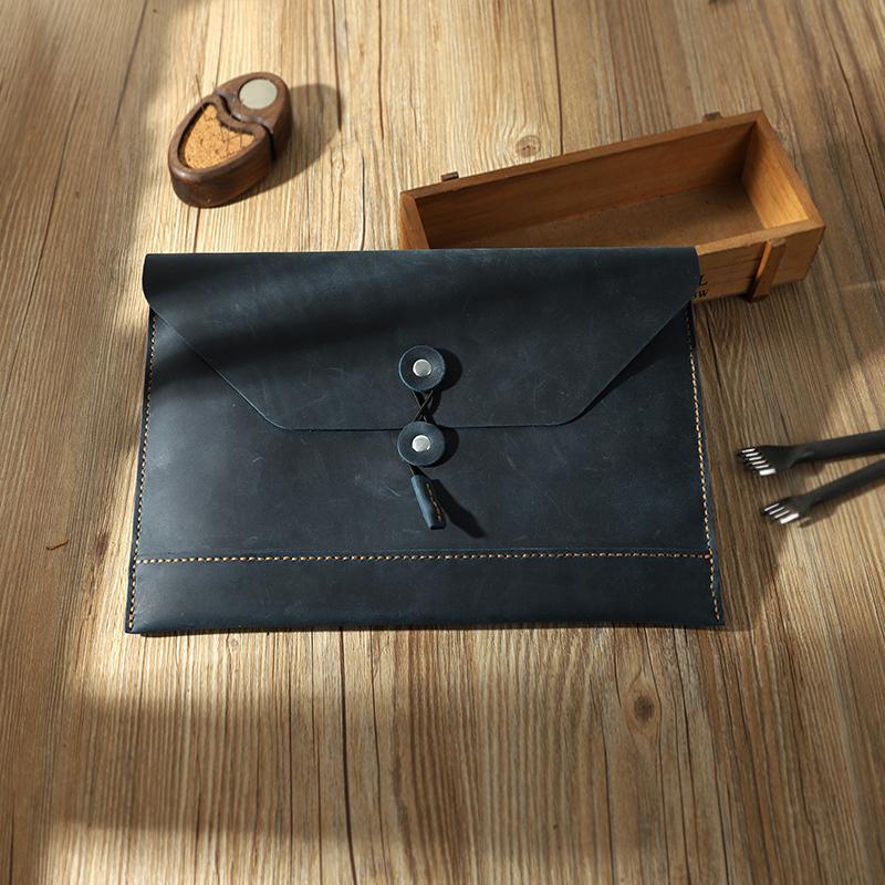 Style: Handmade Mens Clutch A4 Envelope File Bag Personalized Black Leather Folder Purse for Men