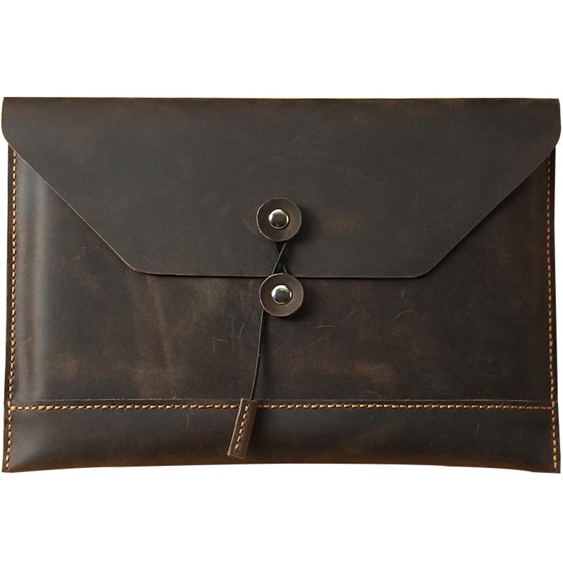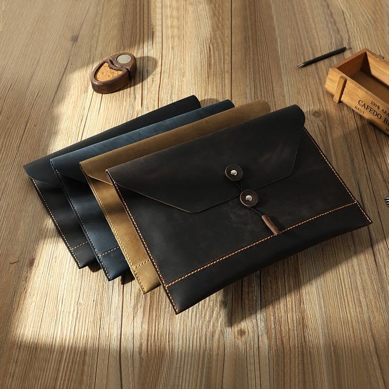 Design: Handmade Mens Clutch A4 Envelope File Bag Personalized Black Leather Folder Purse for Men