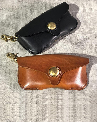 Style: Handmade Mens Cool Brown Leather Glasses Case Glasses Box Black Glasses Holder Sunglasses Case for Men