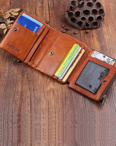 Design: Handmade Mens Cool billfold Leather Wallet Men Small Wallets Trifold for Men