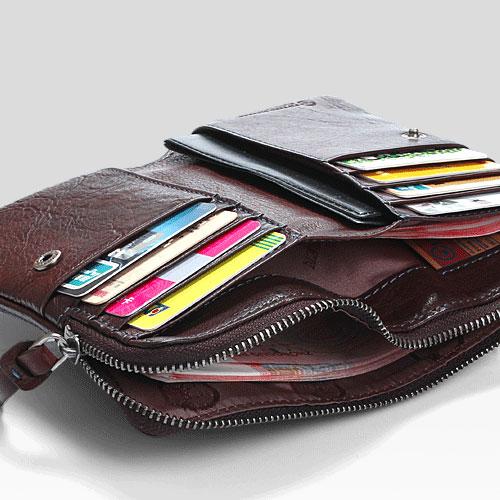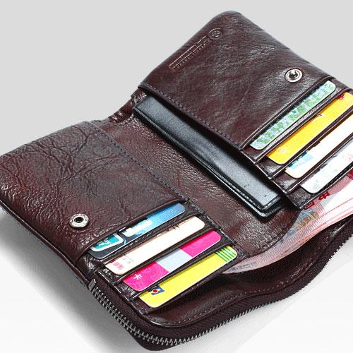 Slots: 2?full size bill slots,?8 card holders,? 2 license slots