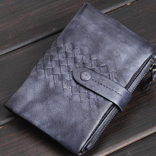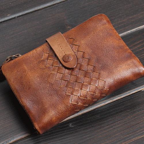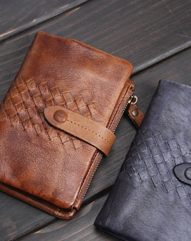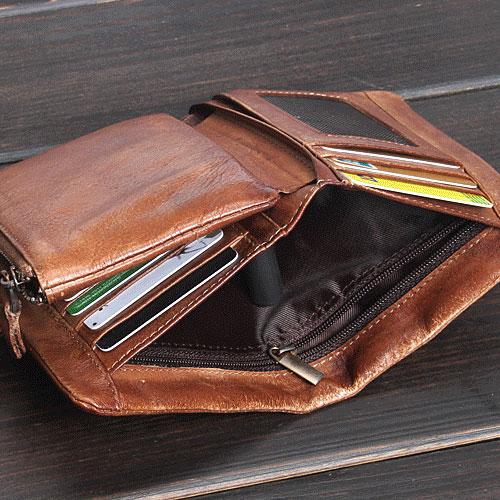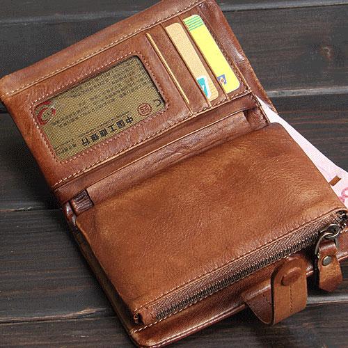 Design: Handmade Mens Cool billfold Leather Wallet Men Small Zipper Wallets Bifold for Men