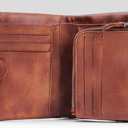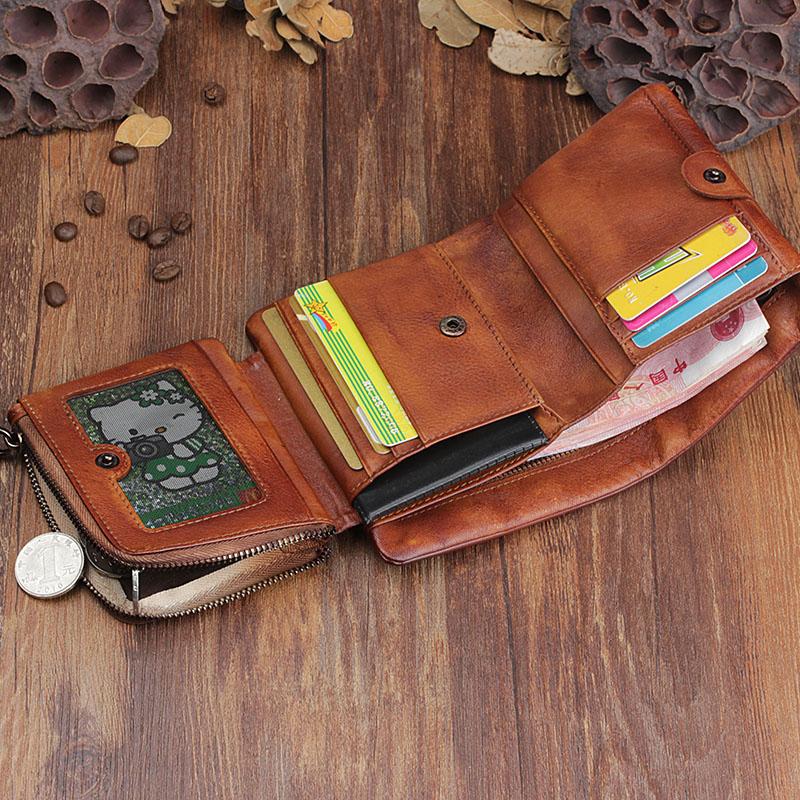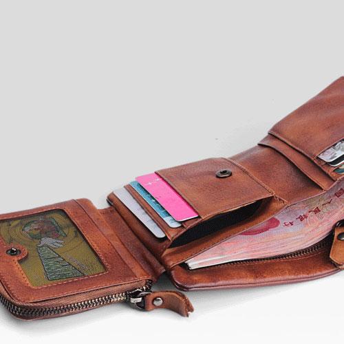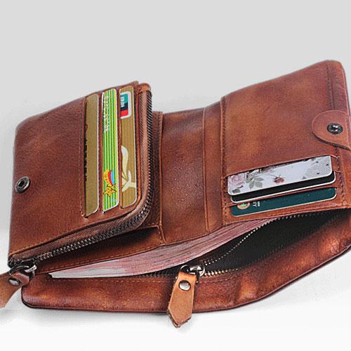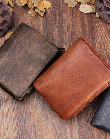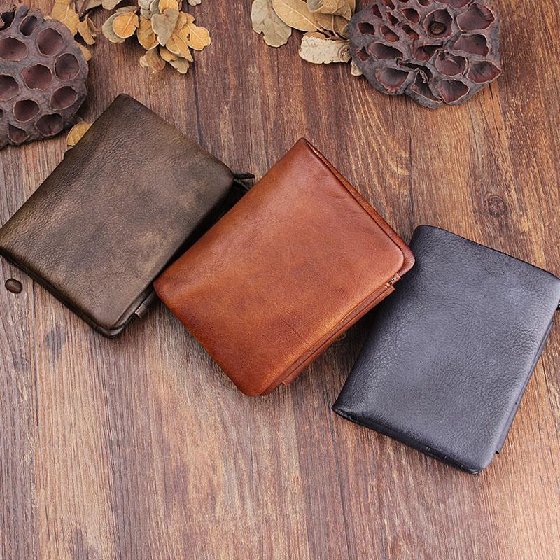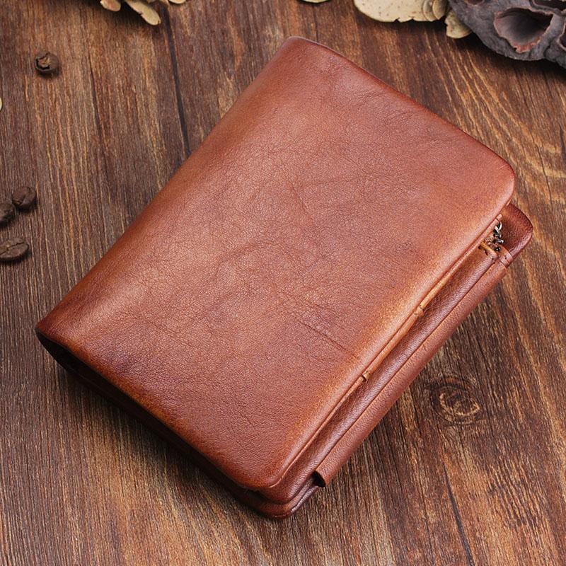 Style: Handmade Mens Cool billfold Leather Wallet Men Small Zipper Wallets Trifold for Men