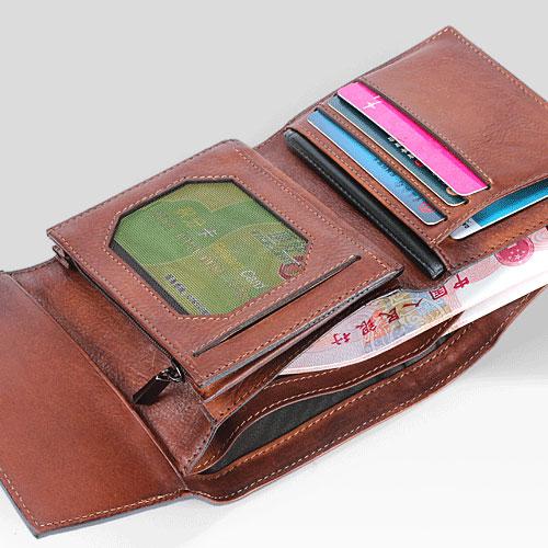 Design: Handmade Mens Cool billfold Leather Wallet Men Small Zipper Wallets Trifold for Men