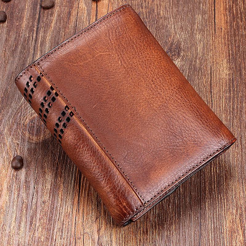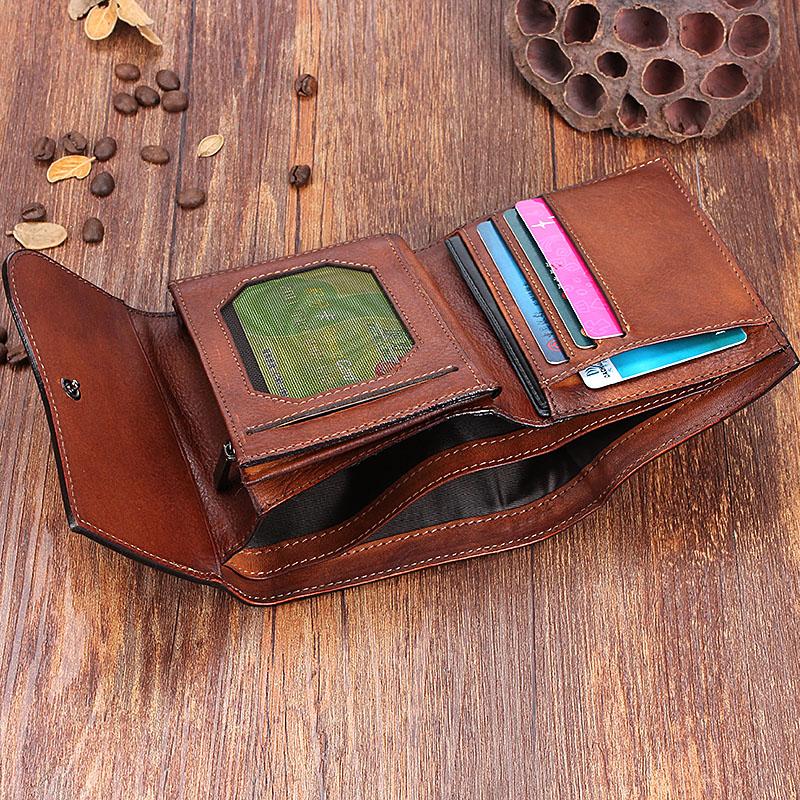 Style: Handmade Mens Cool billfold Leather Wallet Men Small Zipper Wallets Trifold for Men