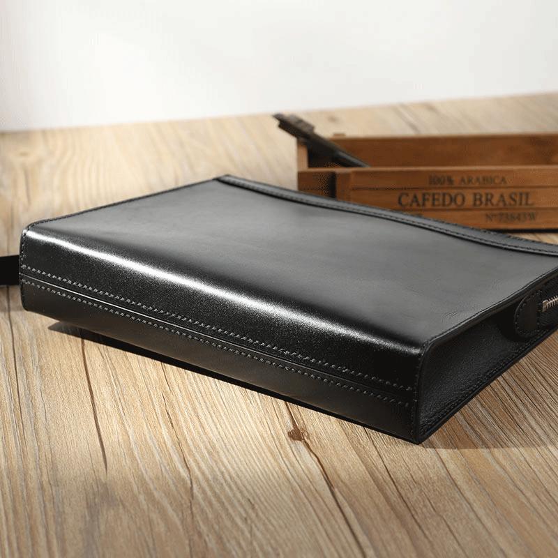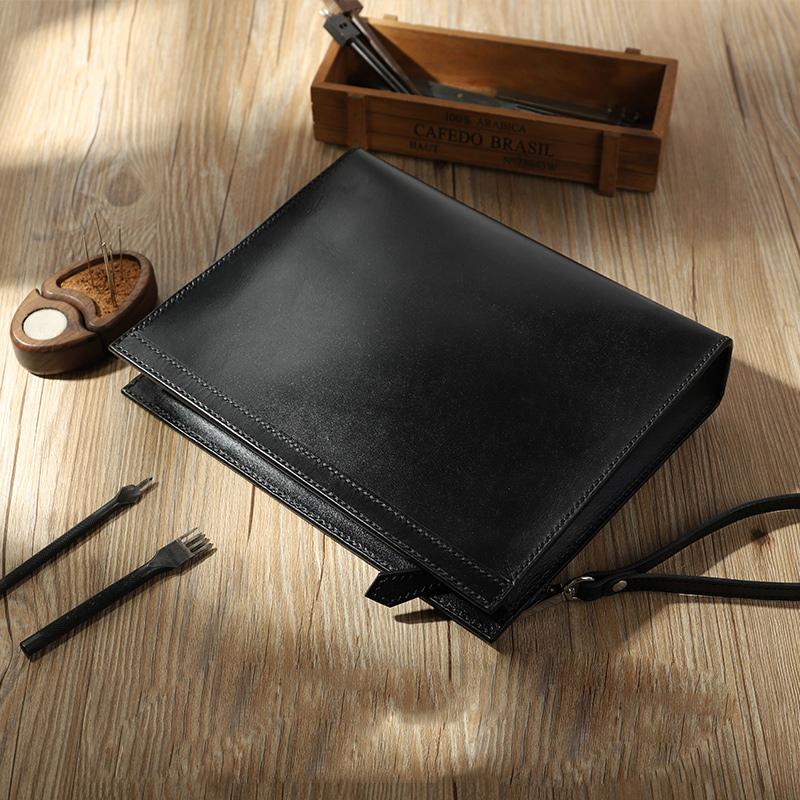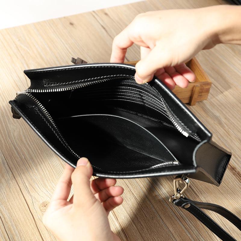Style: Handmade Mens Large Clutch Wallets Personalized Black Leather Wristlet Wallets for Men