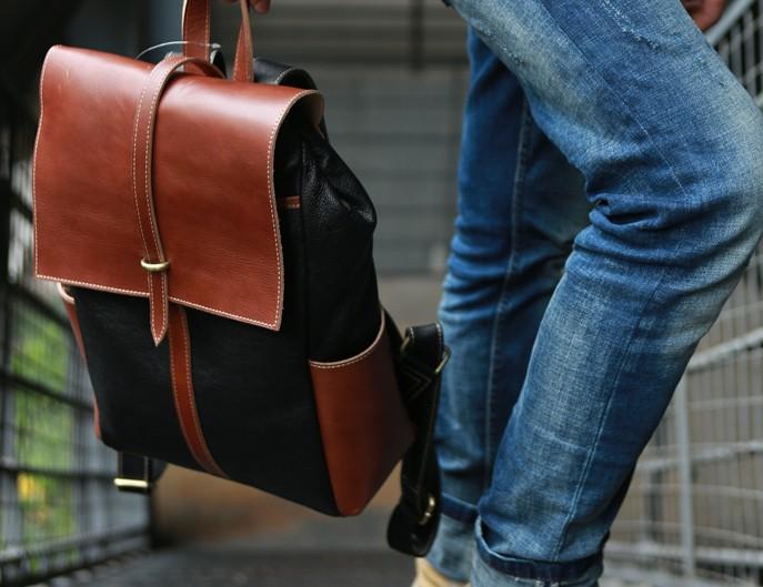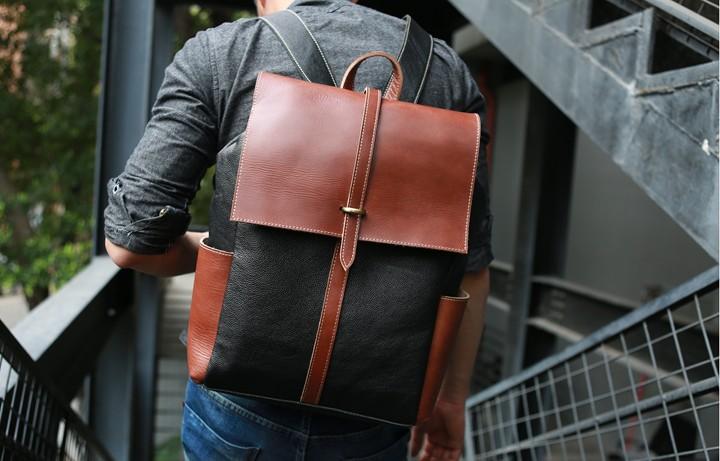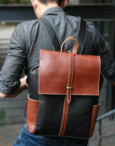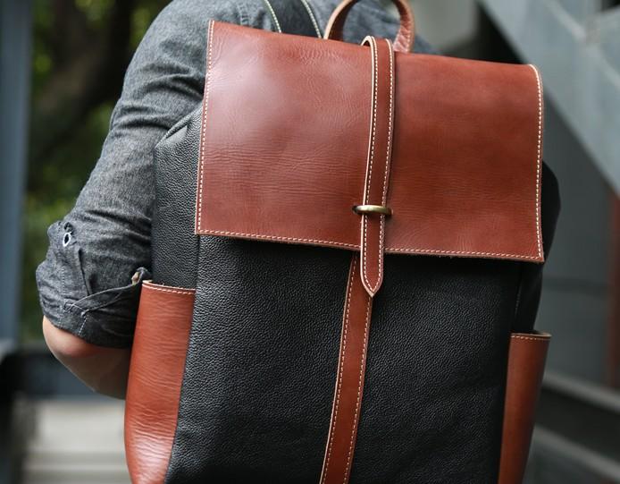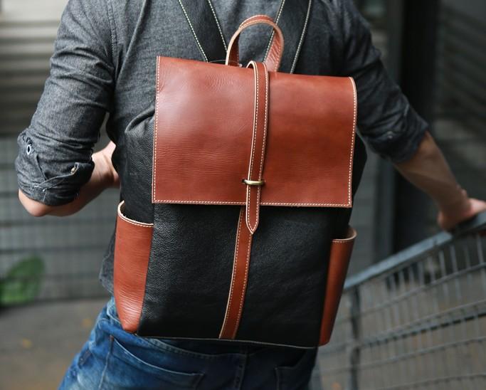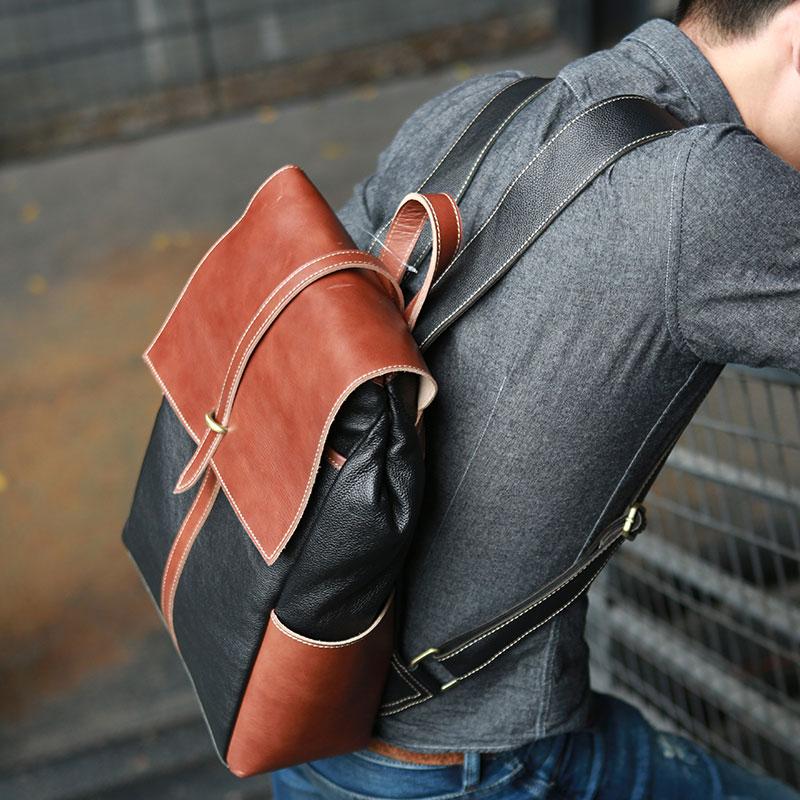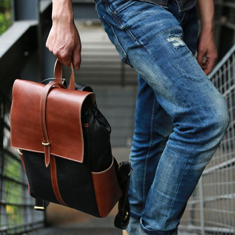 Design: Cool Brown Mens Leather Backpack Travel Backpacks Laptop Backpack for men