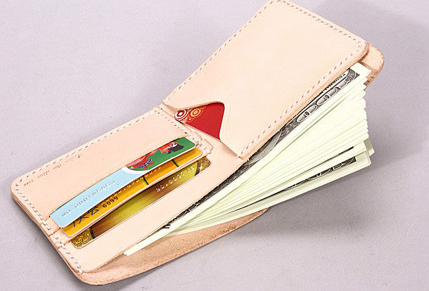 | slot/holder:1?full size bill slot/holder,4 ID/credit card slots/holders | Material:Italian?natural Vegetable-Tanned leather; |
