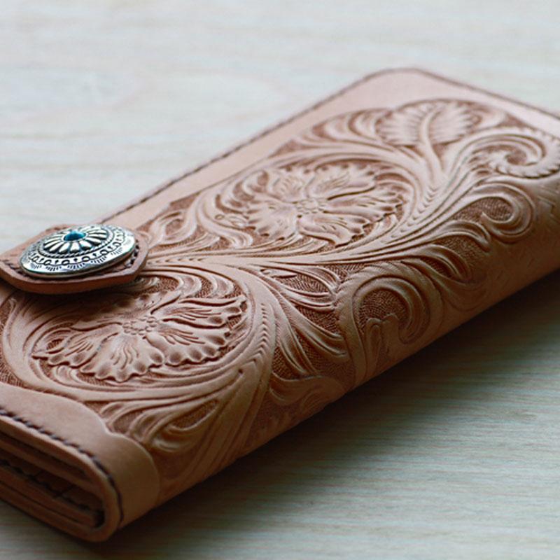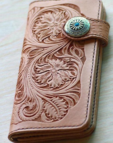 Design: Handmade Tooled Floral Mens Leather Long Biker Wallet Cool Long Chain Wallet for Men