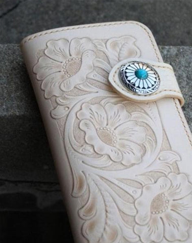 Style: Handmade Mens Tooled Floral Leather Chain Wallet Cool Biker Wallet with Chain