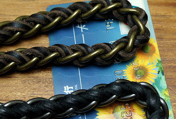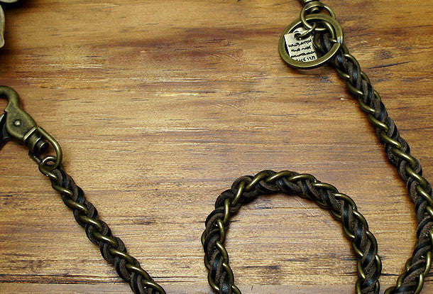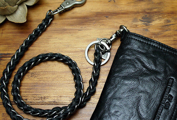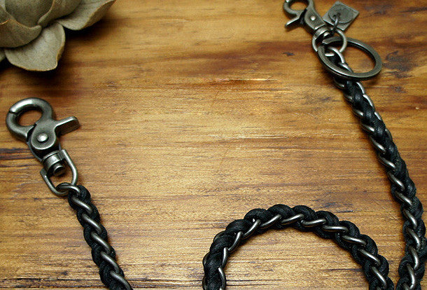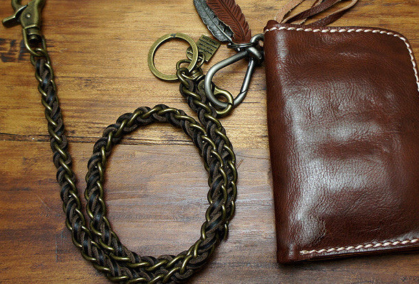This is Handmade Motorcycle biker wallet chain black heavy coffee leather detachable,leather part is made of cowhide,color is black, coffee.This chain is about 70 cm long and diameter of about 10 mm.