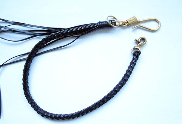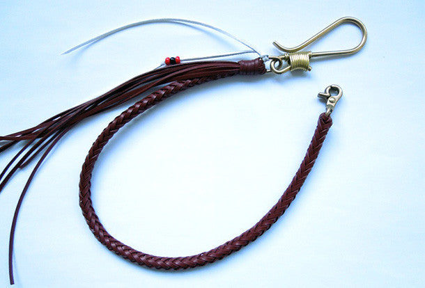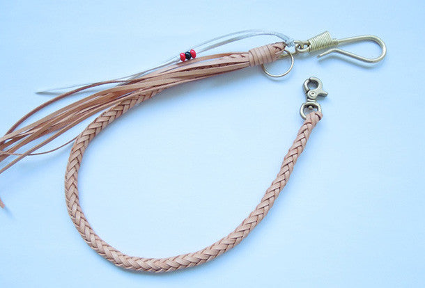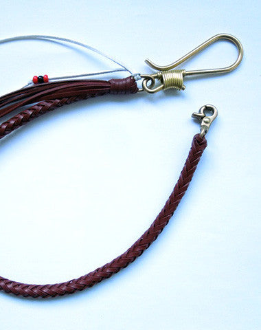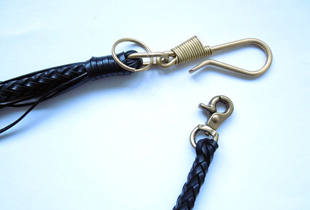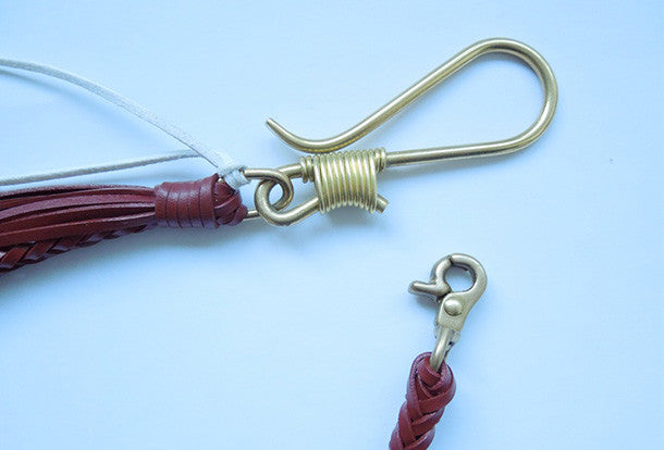 This is handmade natural Italian Vegetable Tanned leather?braided Chain with brass hook?Clip for wallet/purse/clutch.The chain is 8pc,color is brown,black ,beige.This chain is about 50 cm long and diameter of about 8 mm.