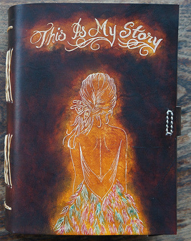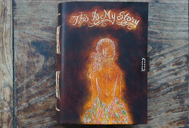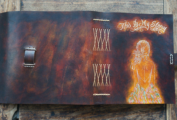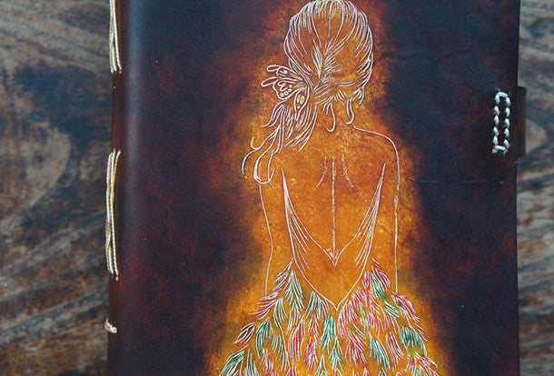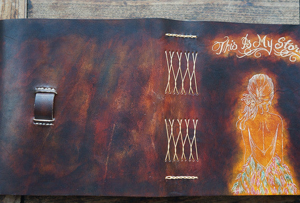 This is Handmade retro??vintage girl?bird?custom?leather hand painted dyed notebook/travel book/diary/journal.The book case is hand painted.