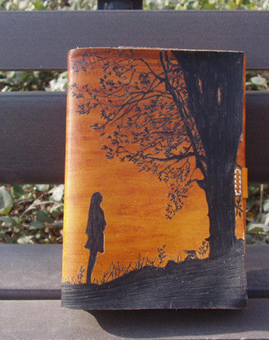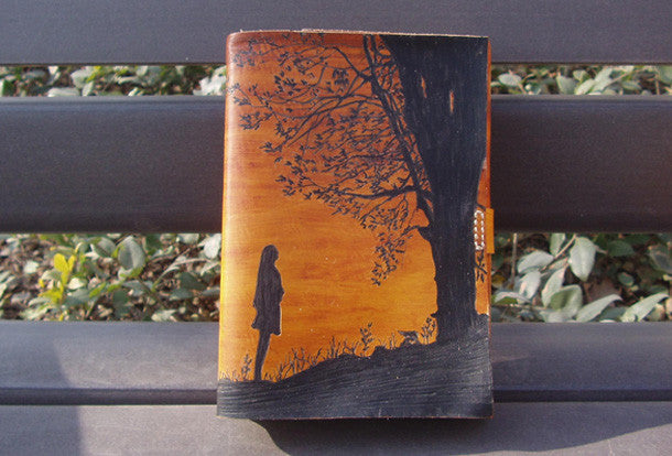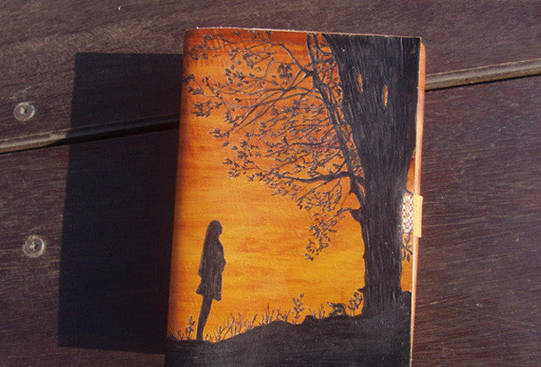 This is Handmade retro??vintage girl tree?custom?leather hand painted dyed notebook/travel book/diary/journal.The book case is hand painted.
