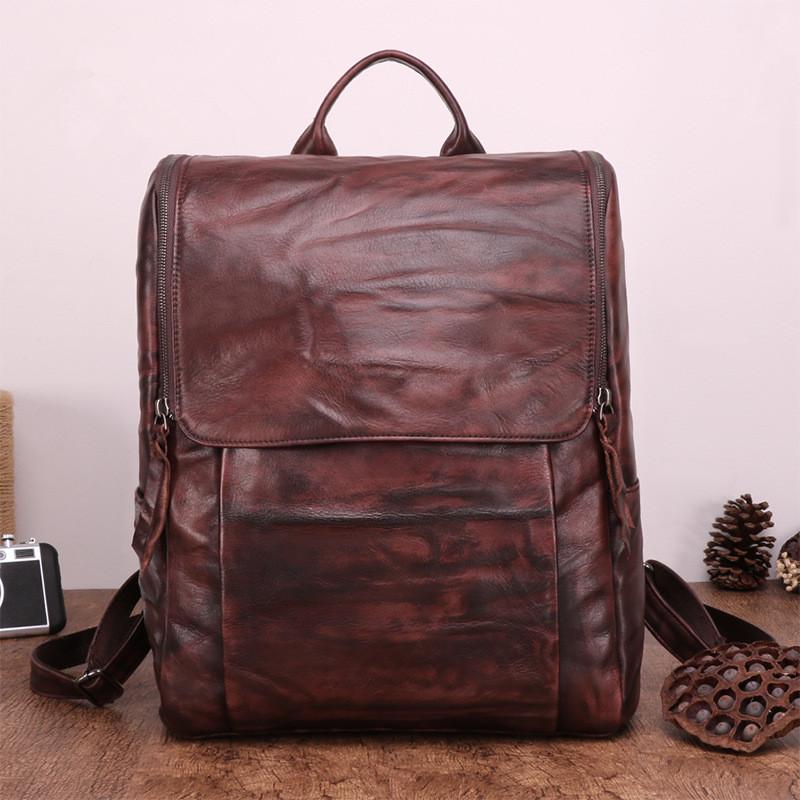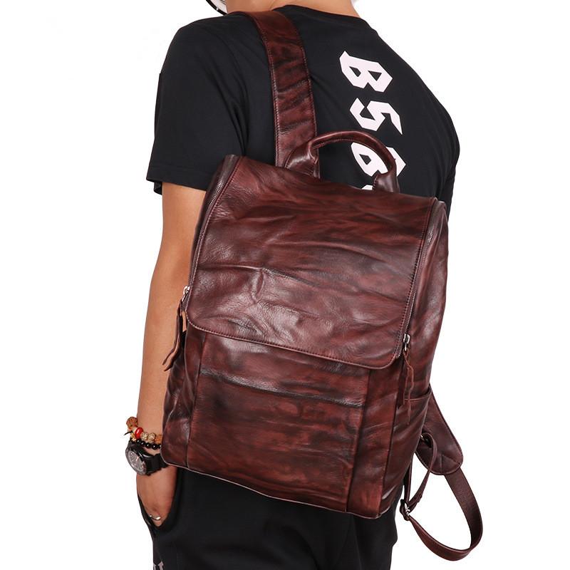 Design: Handmade Cool Leather Men's Backpack Travel Backpack 14inch Computer Backpack For Men