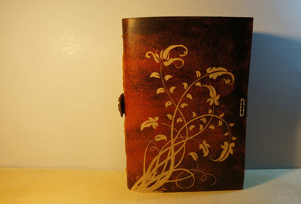 This is Handmade retro??vintage flower custom?leather hand painted dyed notebook/travel book/diary/journal.The book case is hand painted.