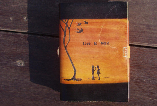 This is Handmade retro??vintage love is here?custom?leather hand painted dyed notebook/travel book/diary/journal.The book case is hand painted.