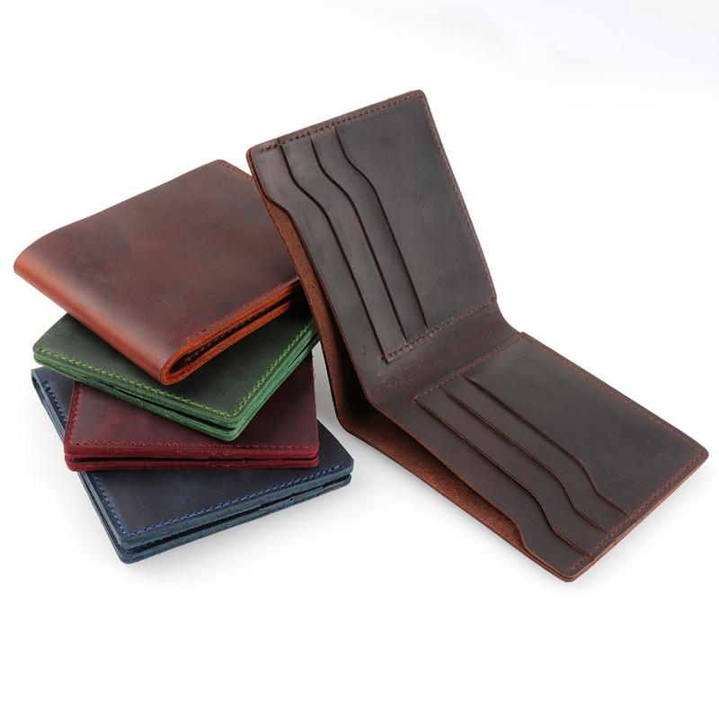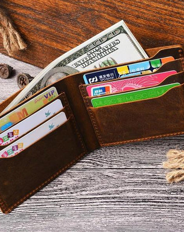 Style: Vintage Brown Leather Men's Small Bifold Wallet Black Slim billfold Wallet For Men
