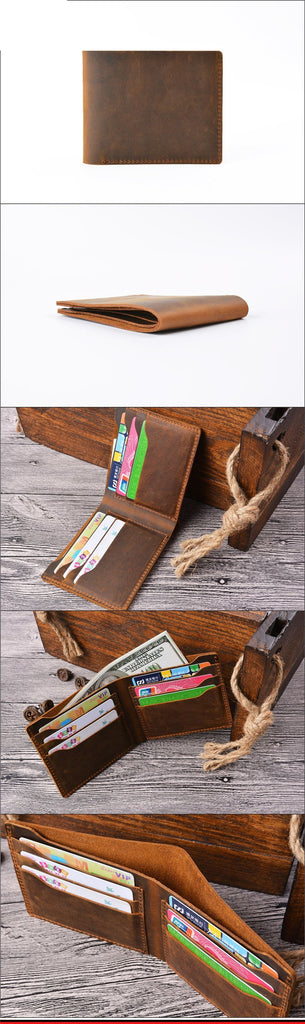 Design: Vintage Brown Leather Men's Small Bifold Wallet Black Slim billfold Wallet For Men