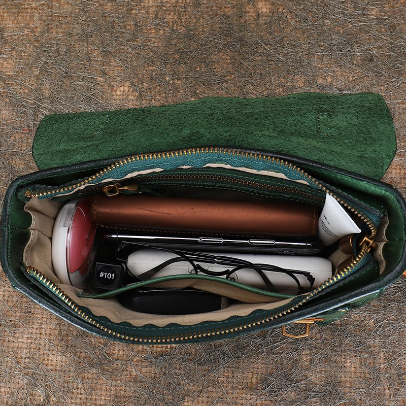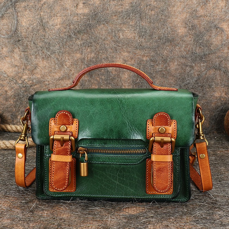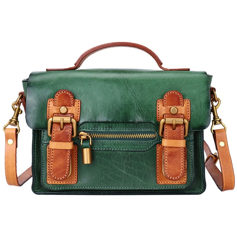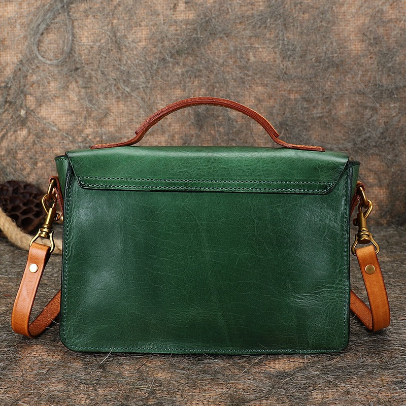 Handmade Small Leather Womens Satchel Shoulder Bags Green Handbag Crossbody Purse for Ladies