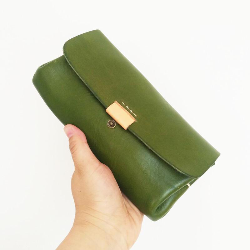 Design: Handmade Suede Mens Leather Light Beige Long Wallet Cool Envelope Wallet Clutch for Men