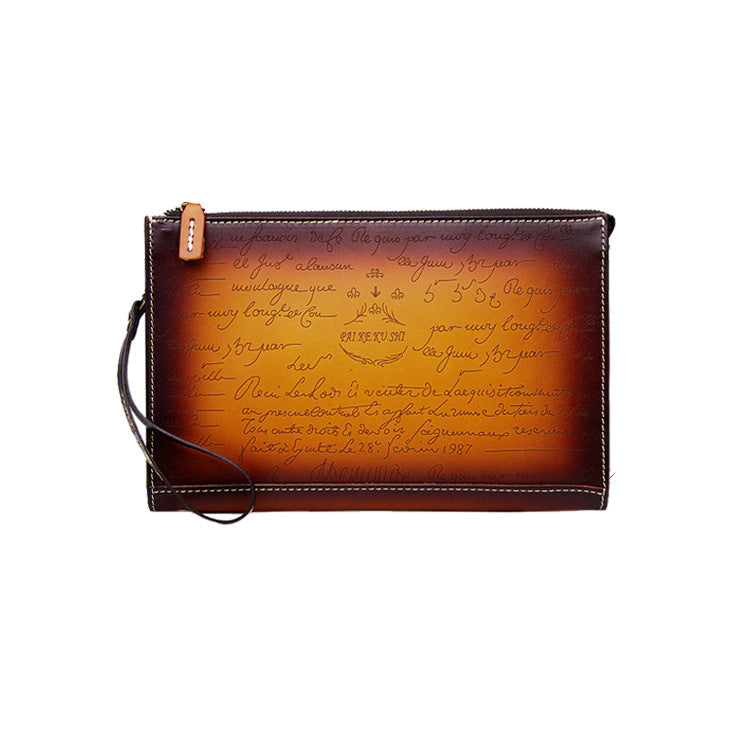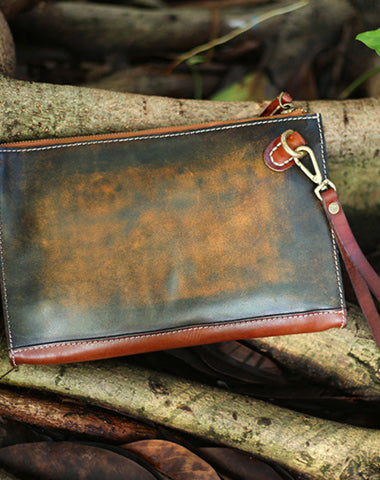 Design: Handmade Leather Clutch Wristlet Bag Wallet Zipper Large Clutch Wristlet Wallet for Men