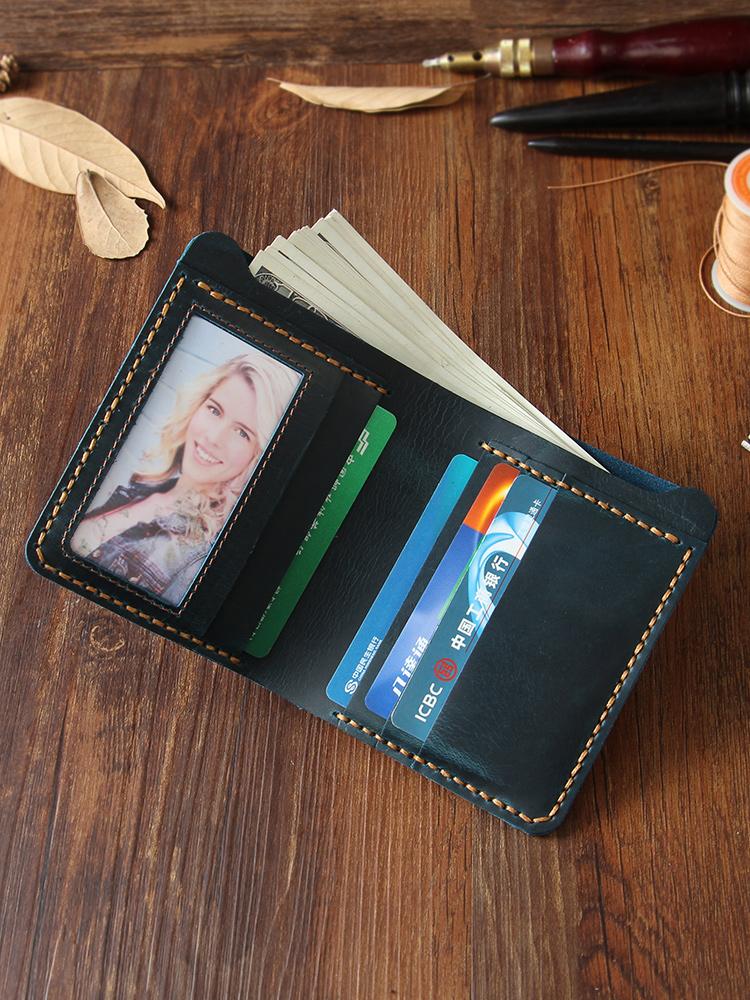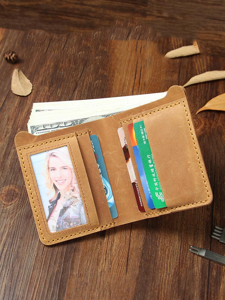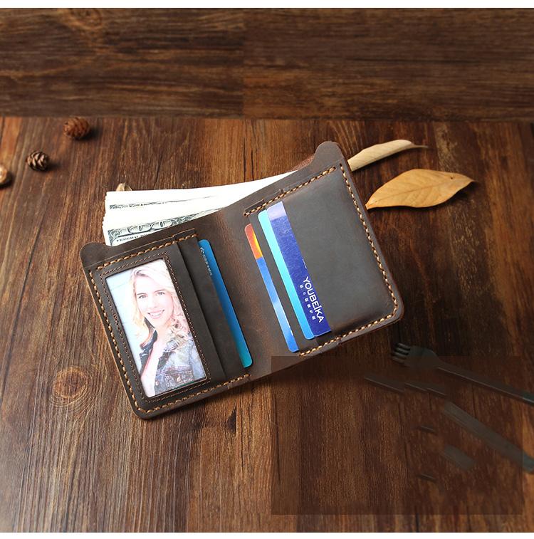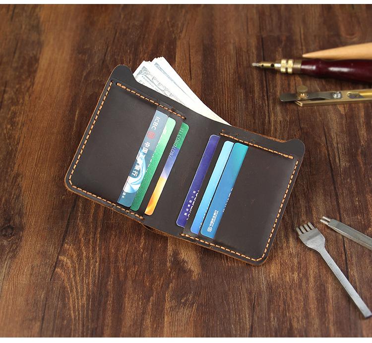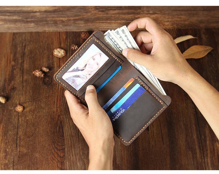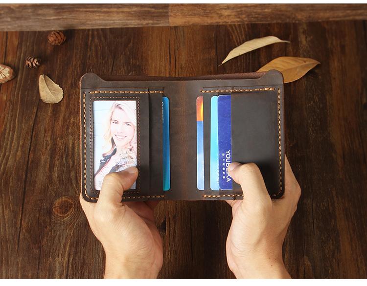 Design: Handmade Coffee Leather Mens Billfold Wallets Personalize Coffee Bifold Small Wallets for Men