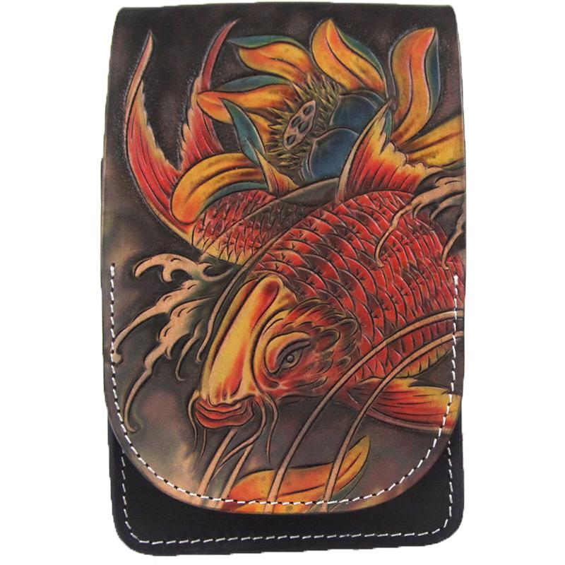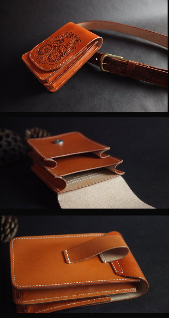 Style: Tooled Handmade Leather Mens Belt Pouch Waist Bag Belt Phone Bag Mobile Bag For Men