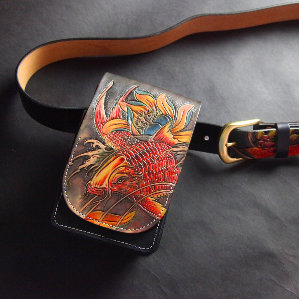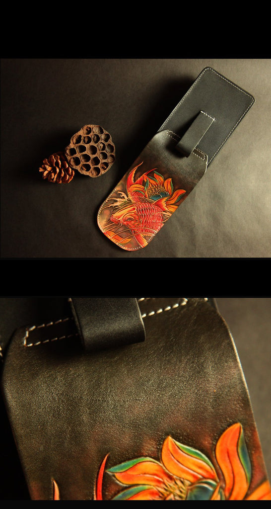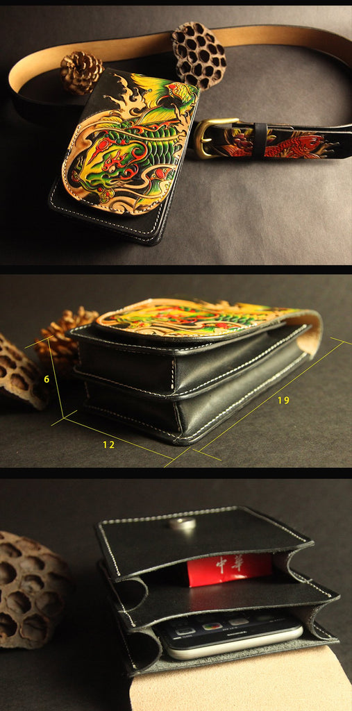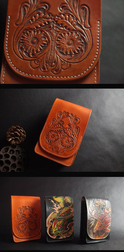 Design: Tooled Handmade Leather Mens Belt Pouch Waist Bag Belt Phone Bag Mobile Bag For Men