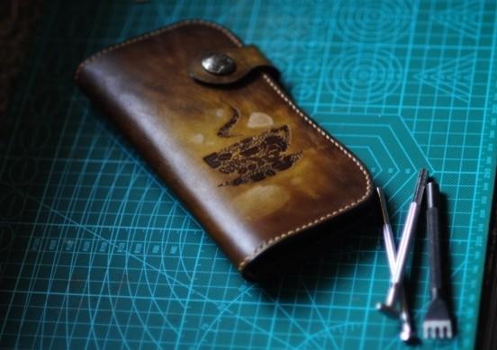 Design: Handmade Tooled Floral Mens Leather Long Biker Wallet Cool Long Chain Wallet for Men