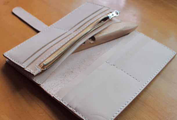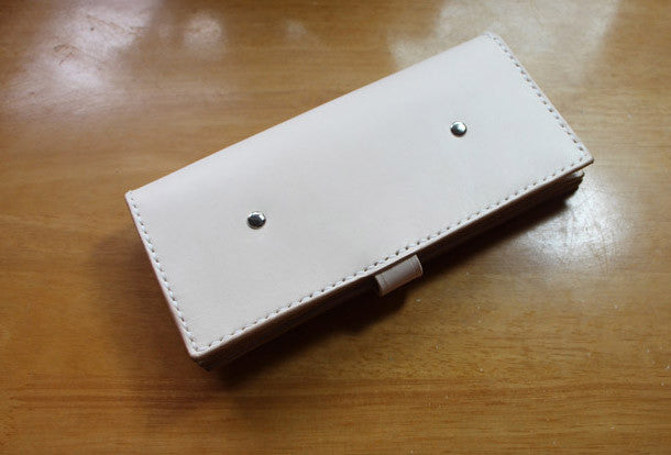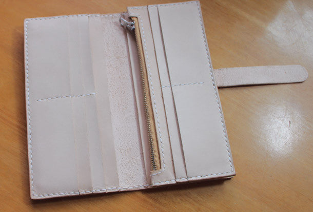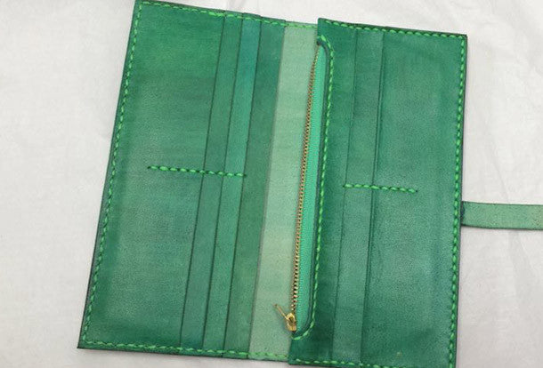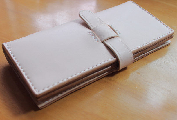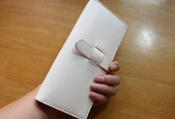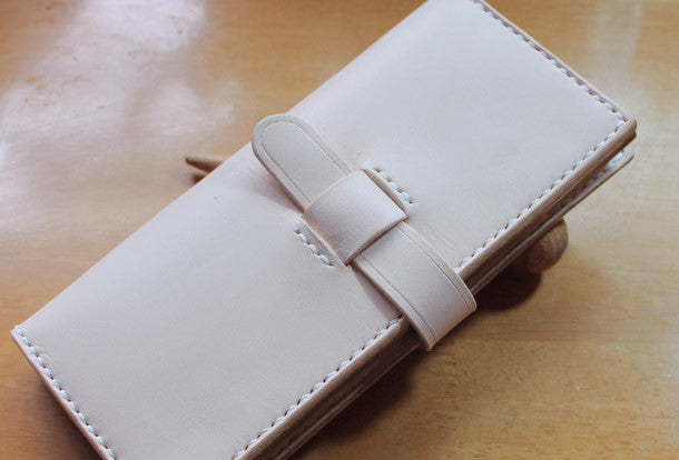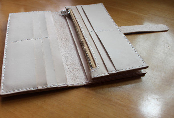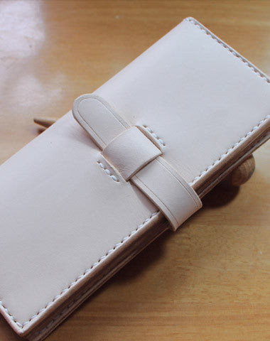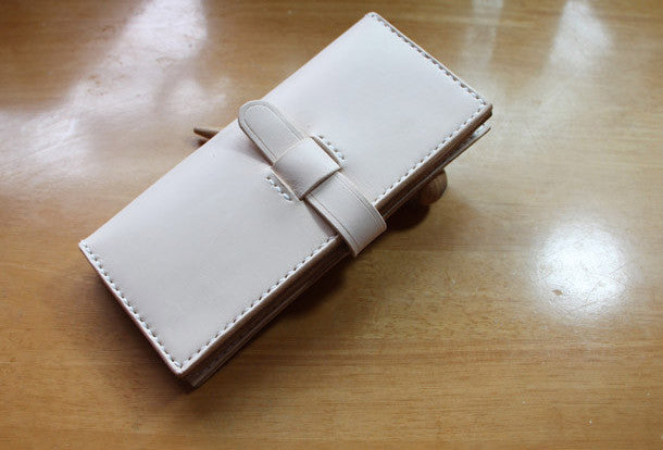 Handmade vintage purse leather wallet long phone wallet clutch wallet beige women