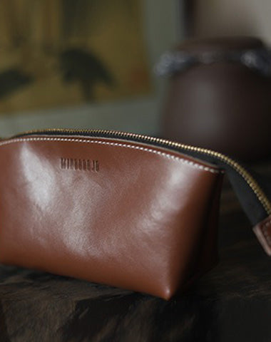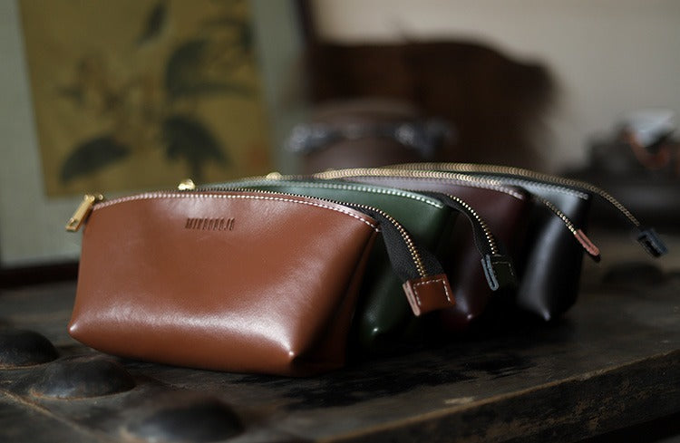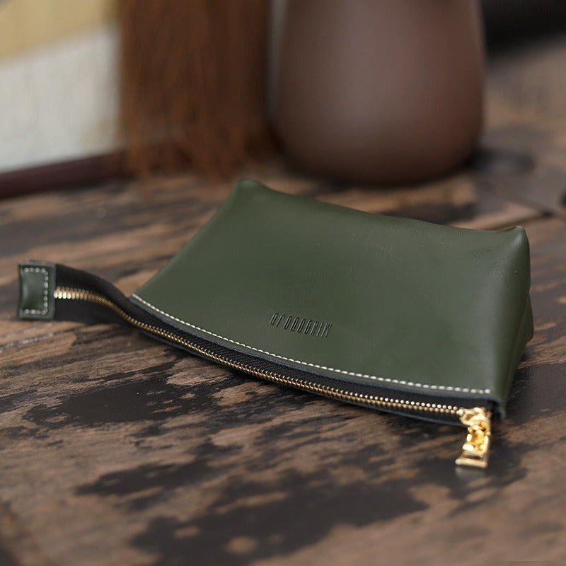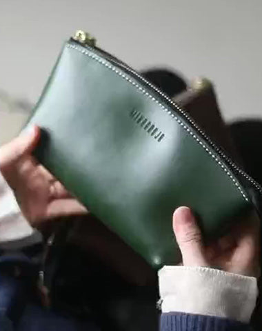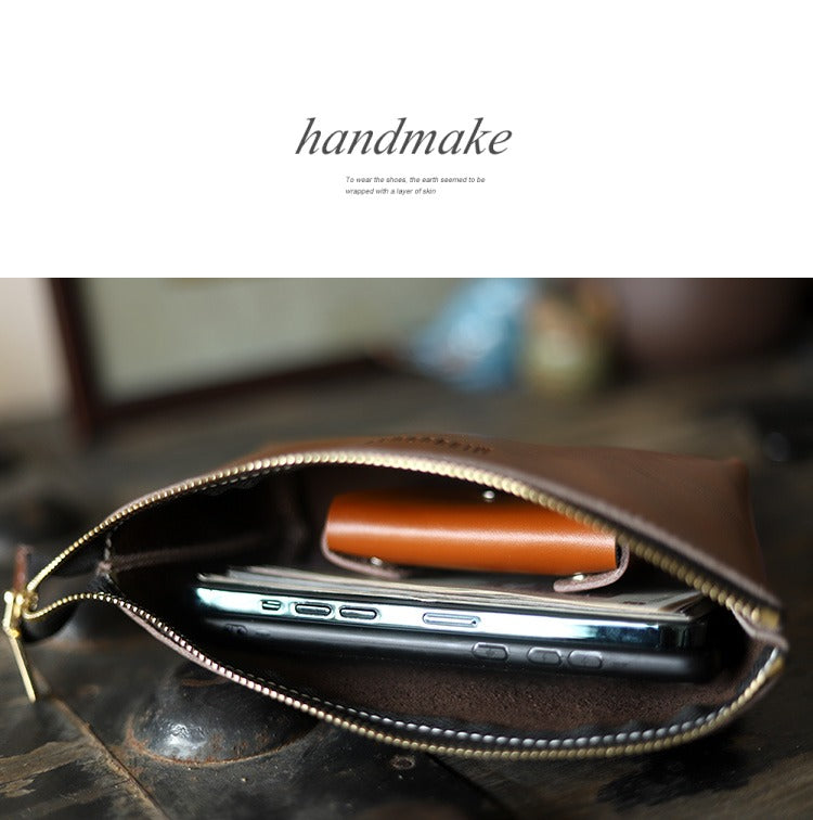 Style: Handmade Women Leather Clutch Wallet Black Toiletry Bag Makeup Bag For Women