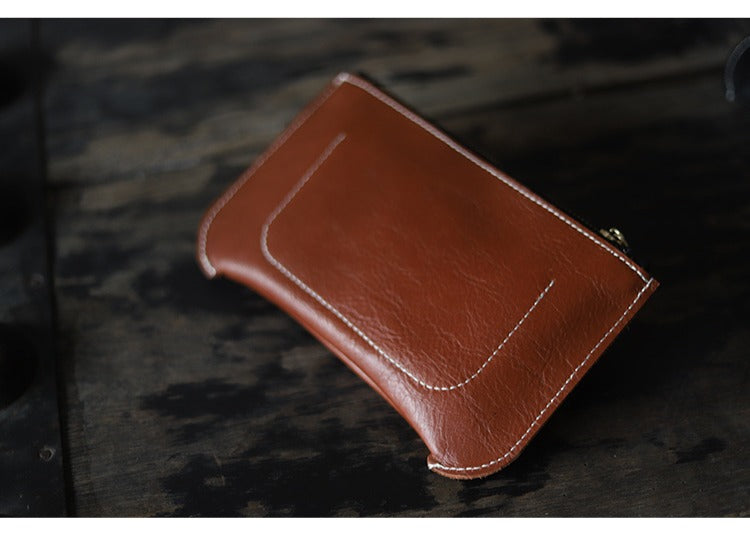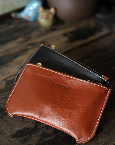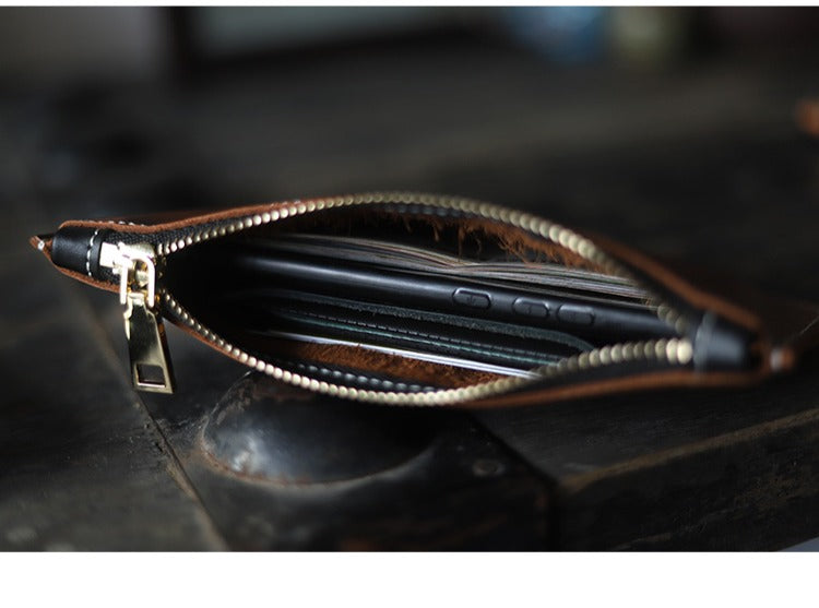 Handmade Women Leather Clutch Wallet Brown Slim Zip Clutch Phone Purse For Women
