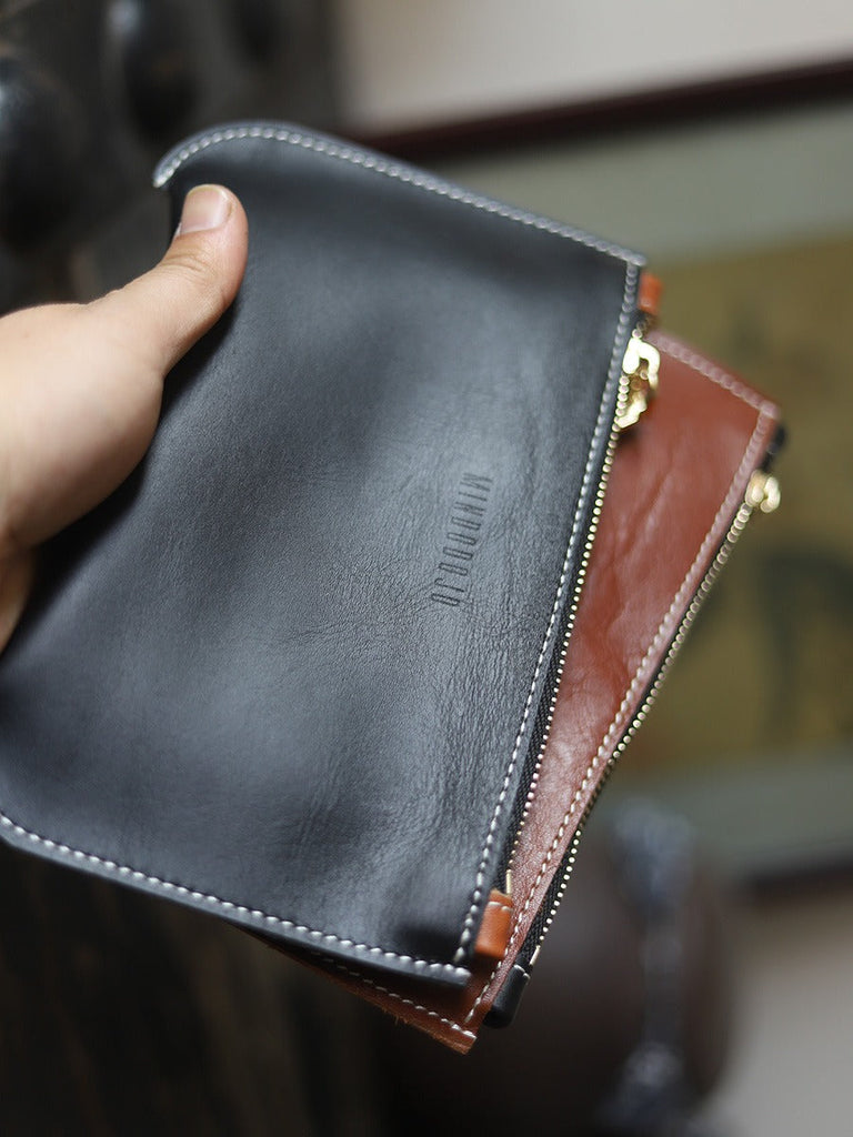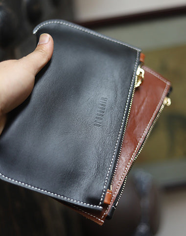 Style: Handmade Women Leather Clutch Wallet Black Slim Zip Clutch Phone Purse For Women