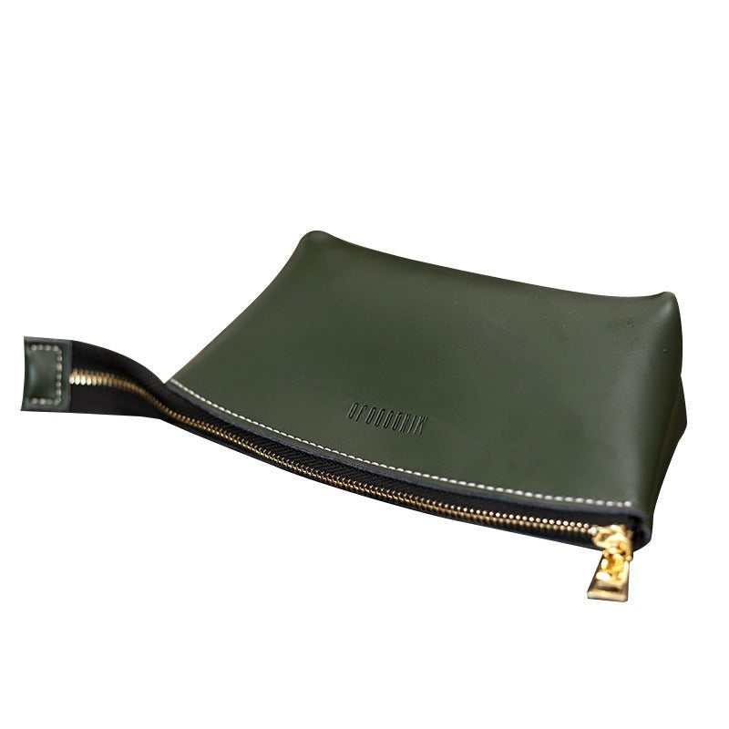 Handmade Women Leather Clutch Wallet Green Toiletry Bag Makeup Bag For Women