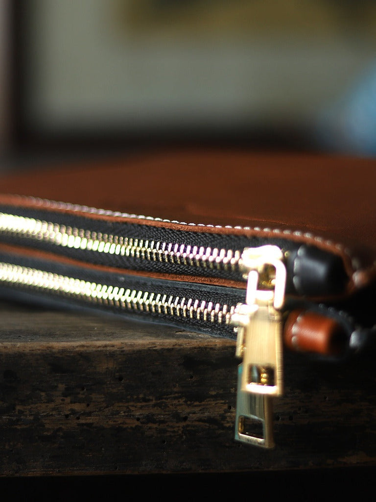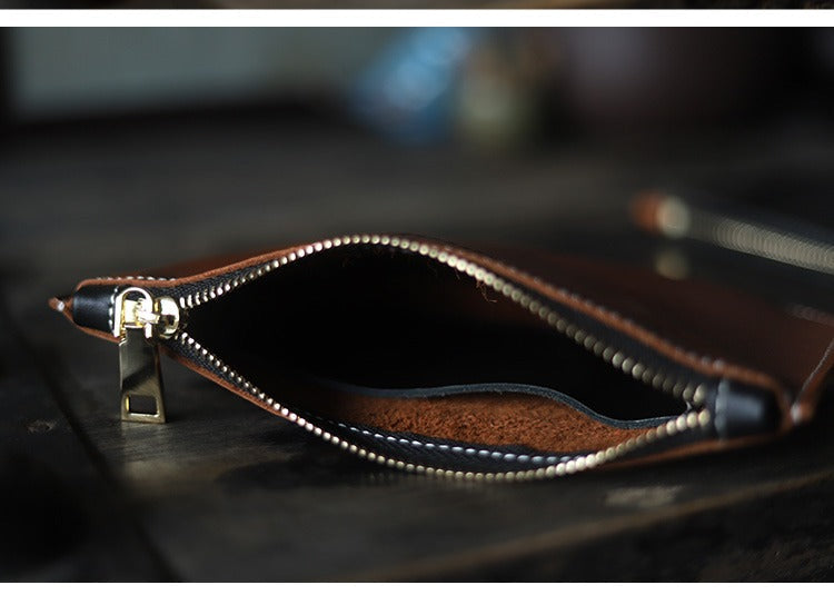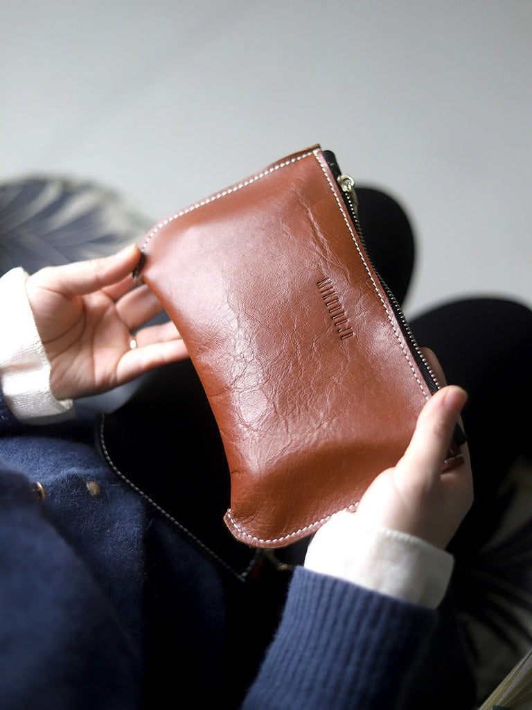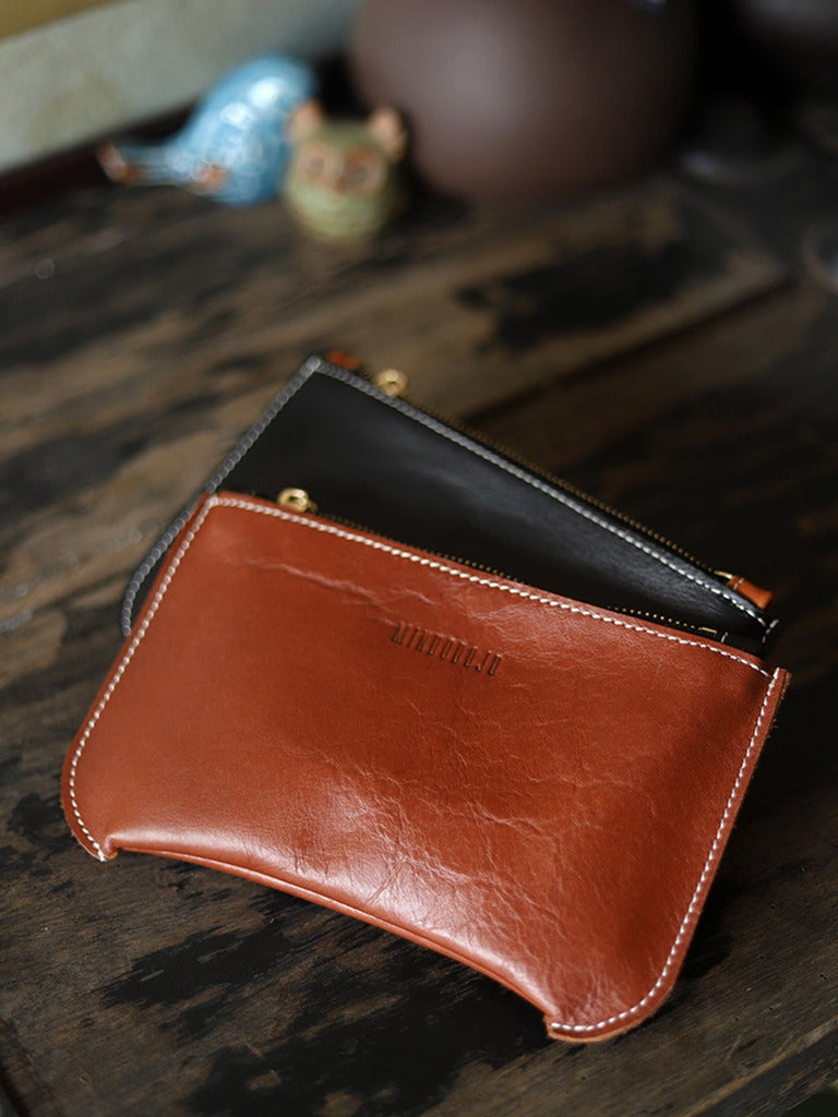 Handmade Women Leather Clutch Wallets Slim Zip Clutch Phone Purse For Women