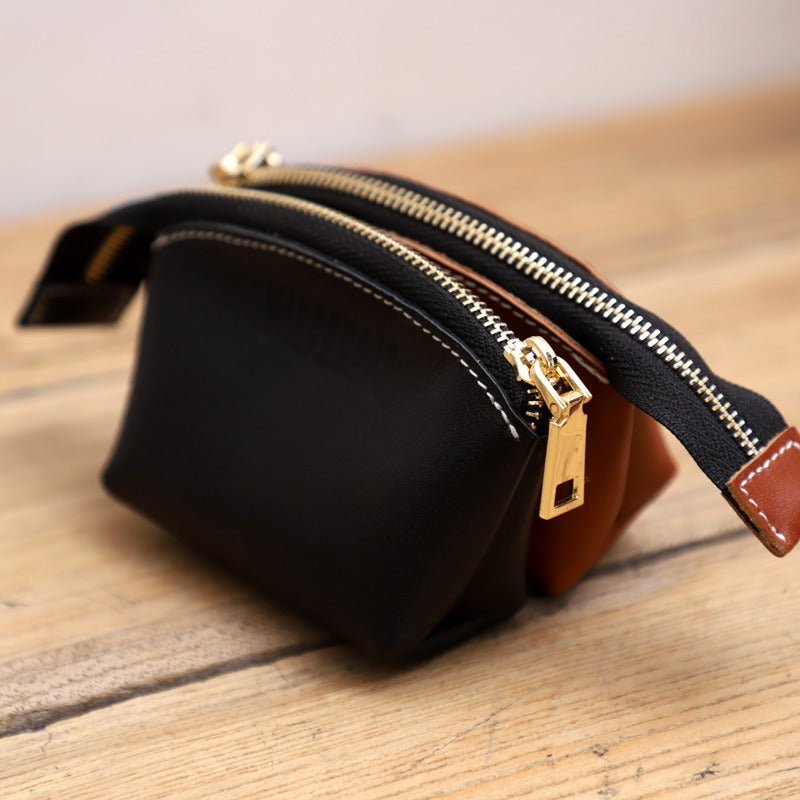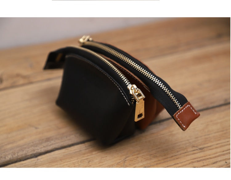 Handmade Women Leather Coin Wallet Minimalist Change Pouch Coin Zip Wallet For Women