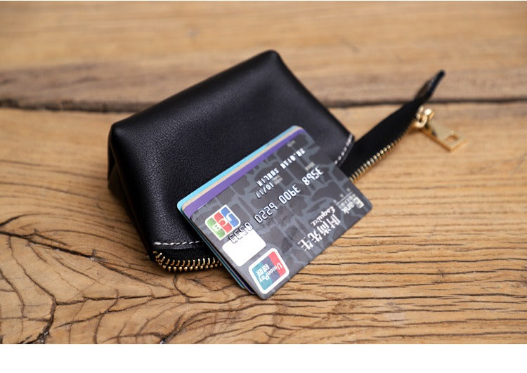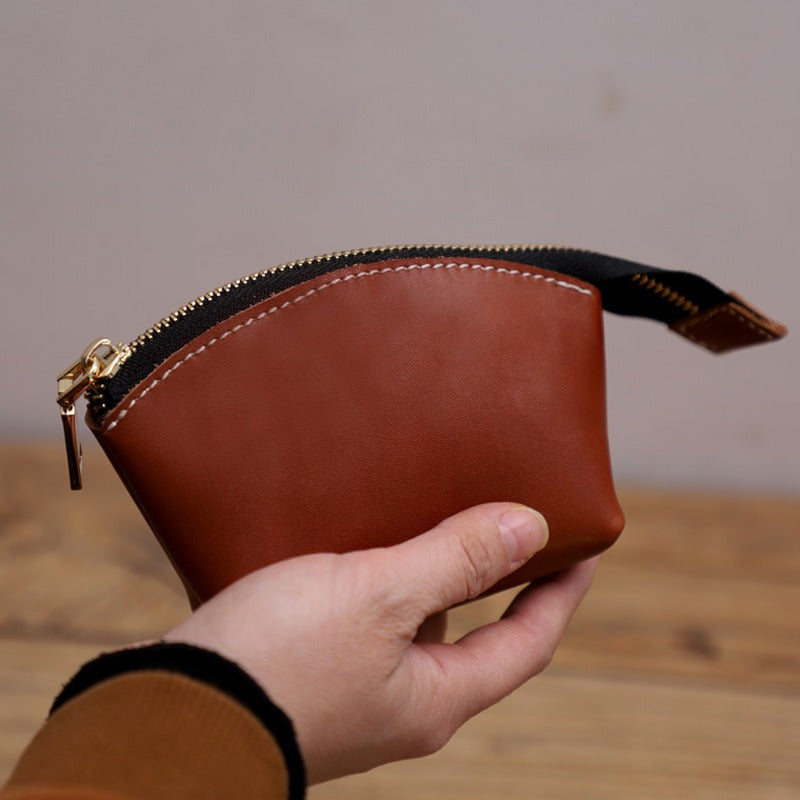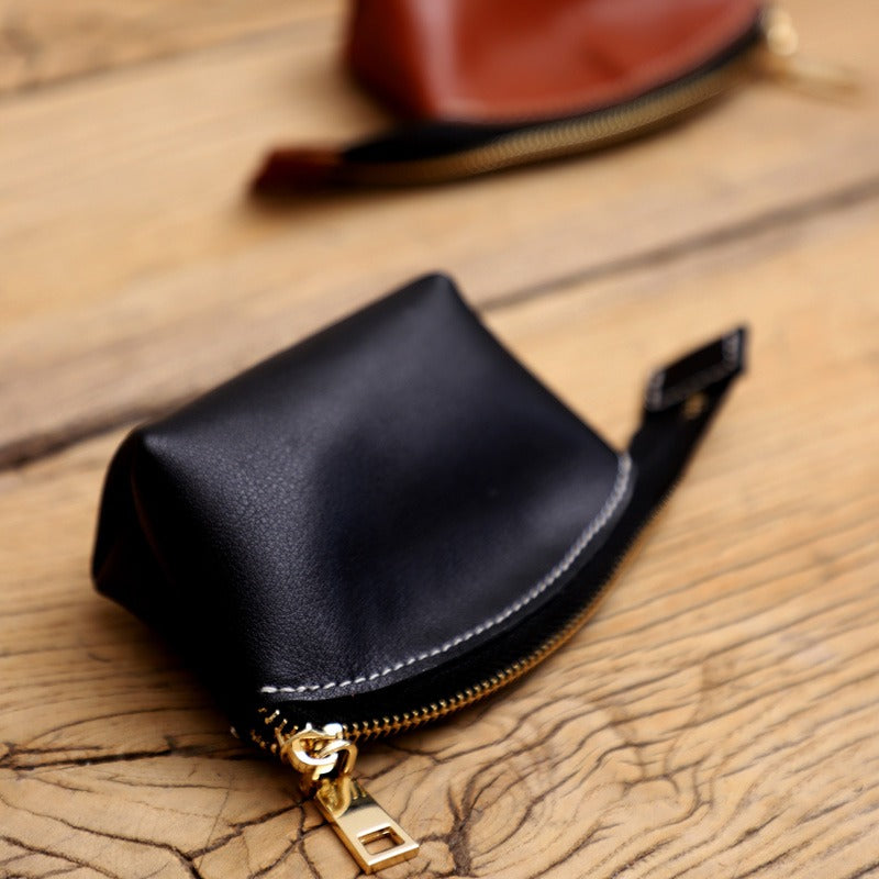 Style: Handmade Women Leather Coin Wallet Minimalist Change Pouch Coin Zip Wallet For Women