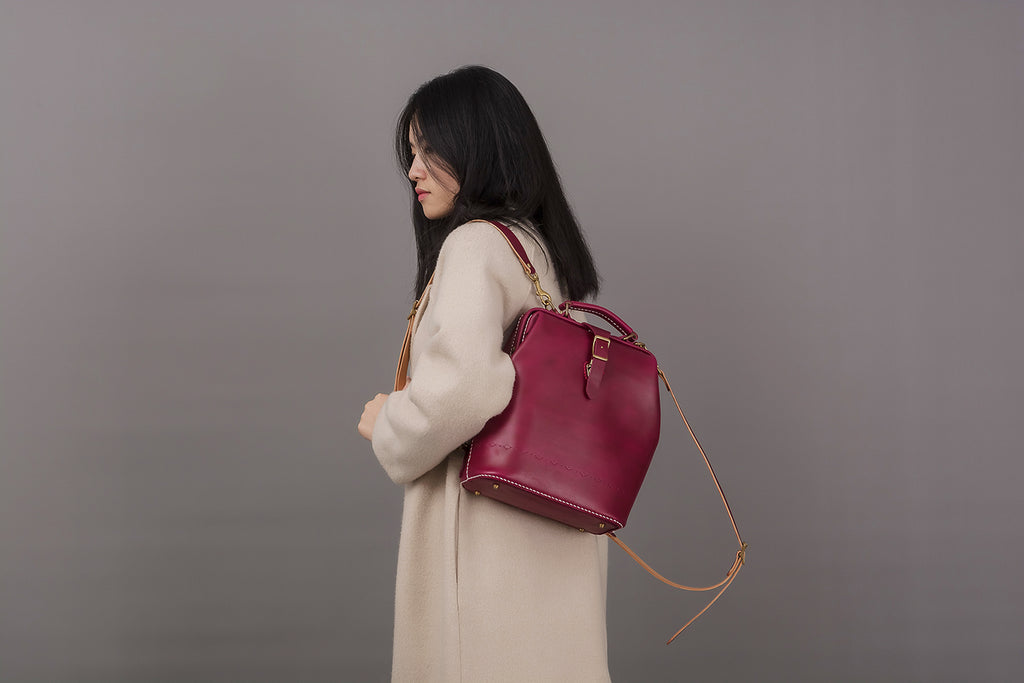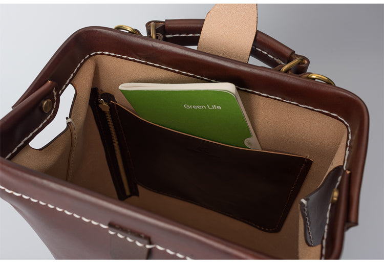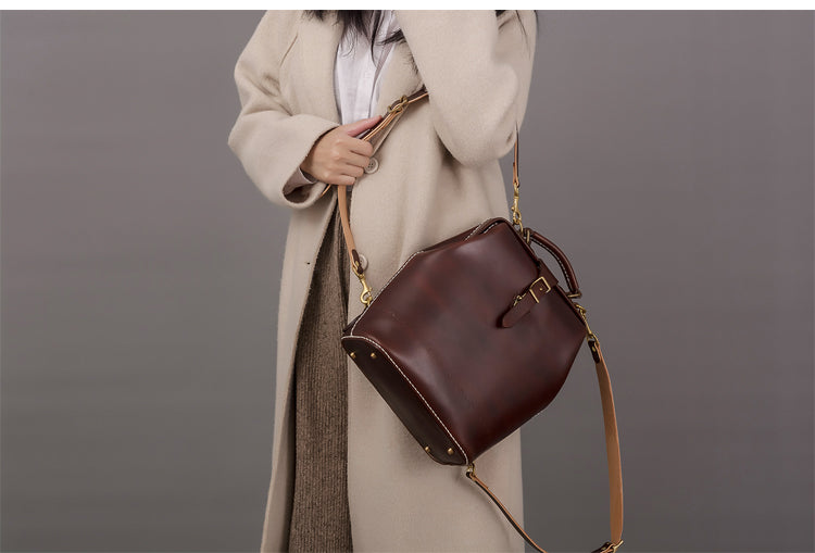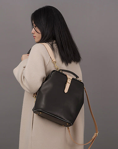 Style: Handmade Womens Coffee Leather Doctor Backpack Purse Shoulder Doctor Handbag for Women