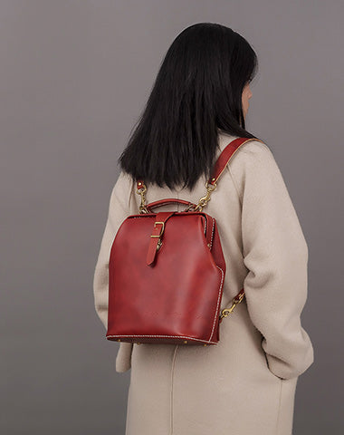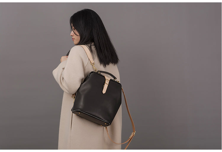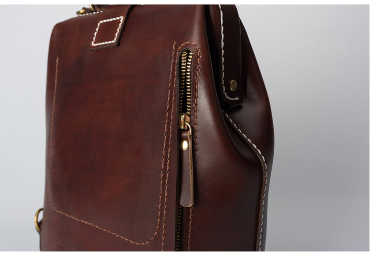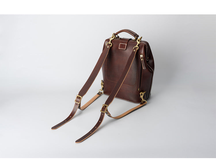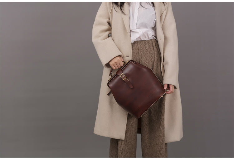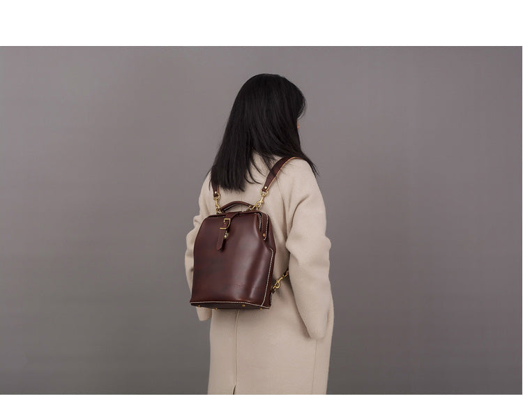 Design: Handmade Womens Coffee Leather Doctor Backpack Purse Shoulder Doctor Handbag for Women
