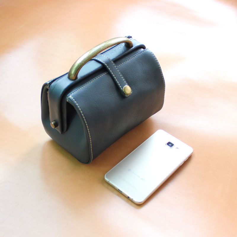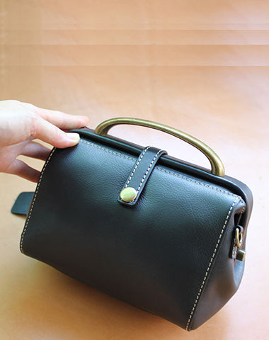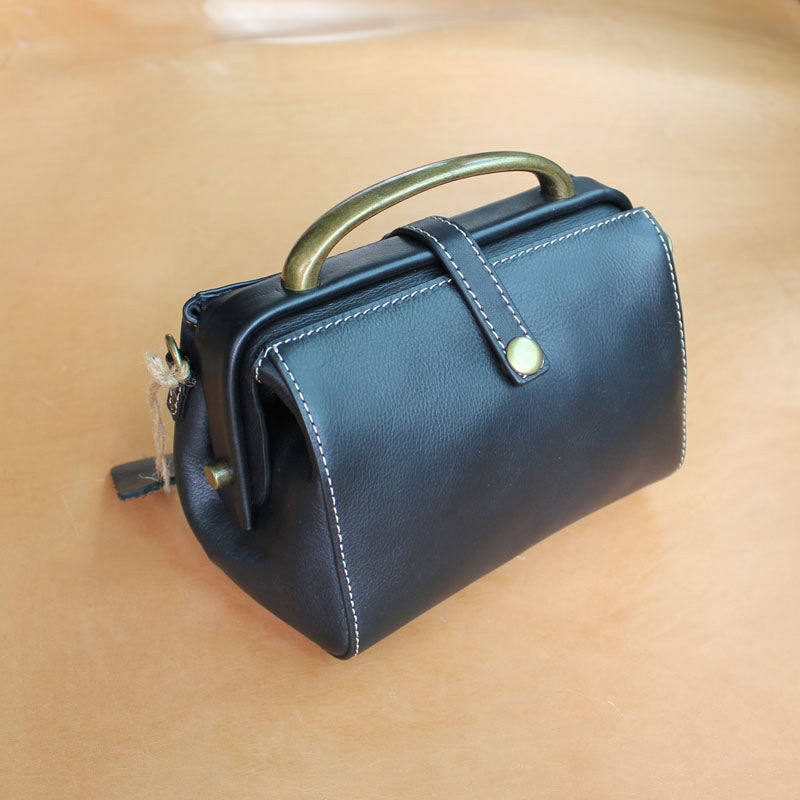 Handmade Womens Black Leather Mini Doctor Handbags Shoulder Purses Black Doctor Purses for Women