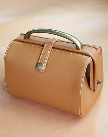 Style: Vintage Womens Tan Leather Mini Doctor Handbags Shoulder Purses Tan Doctor Purses for Women