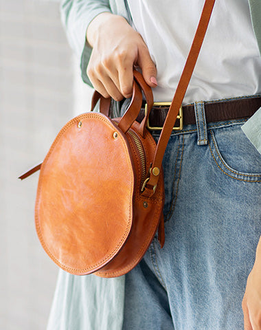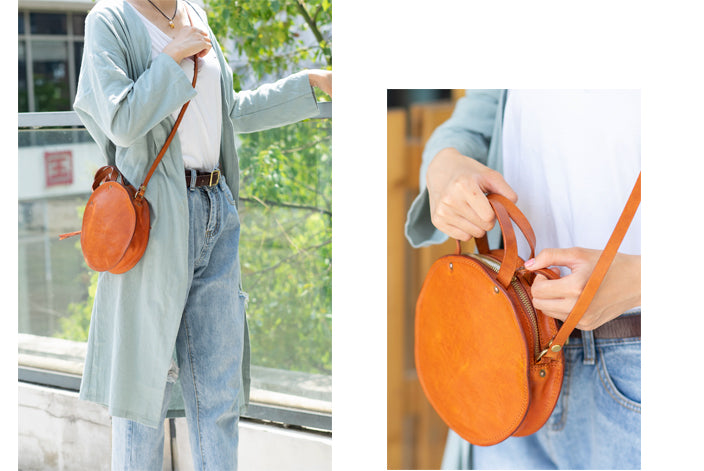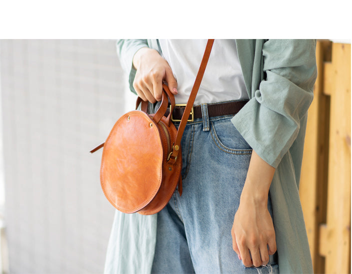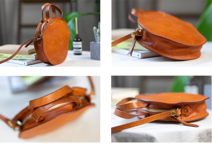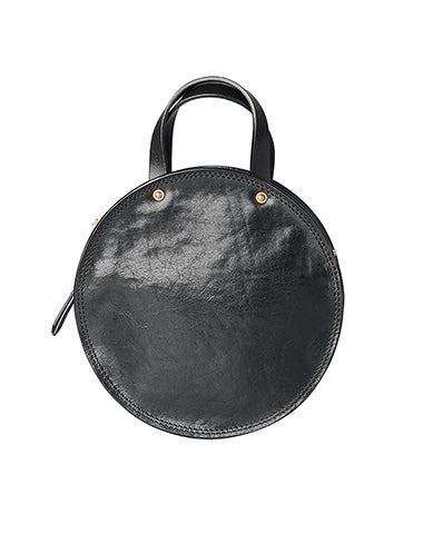 Style: Handmade Womens Black Leather Round Handbag Purses Black Round Shoulder Bag Crossbody Purse for Women