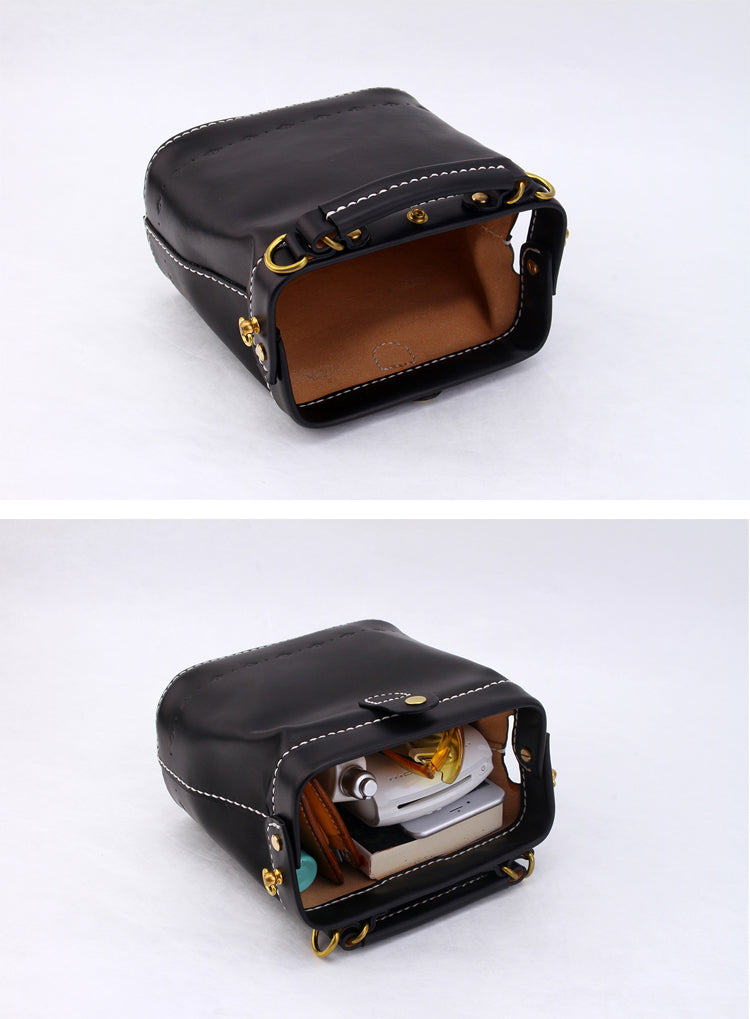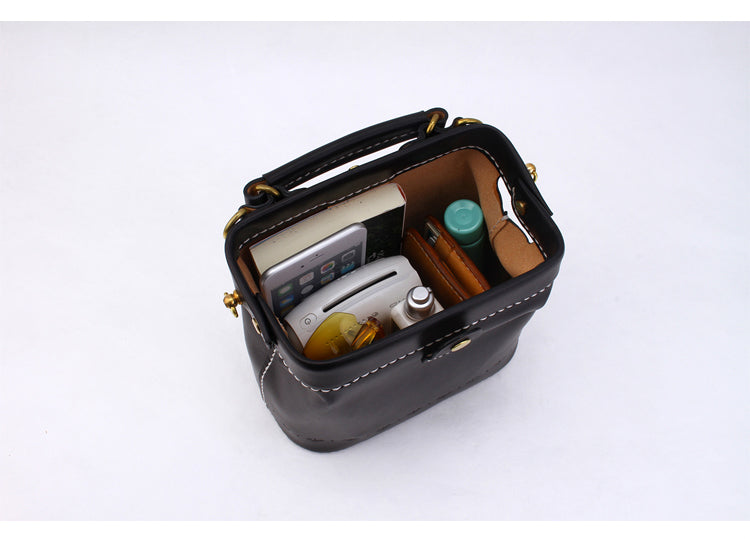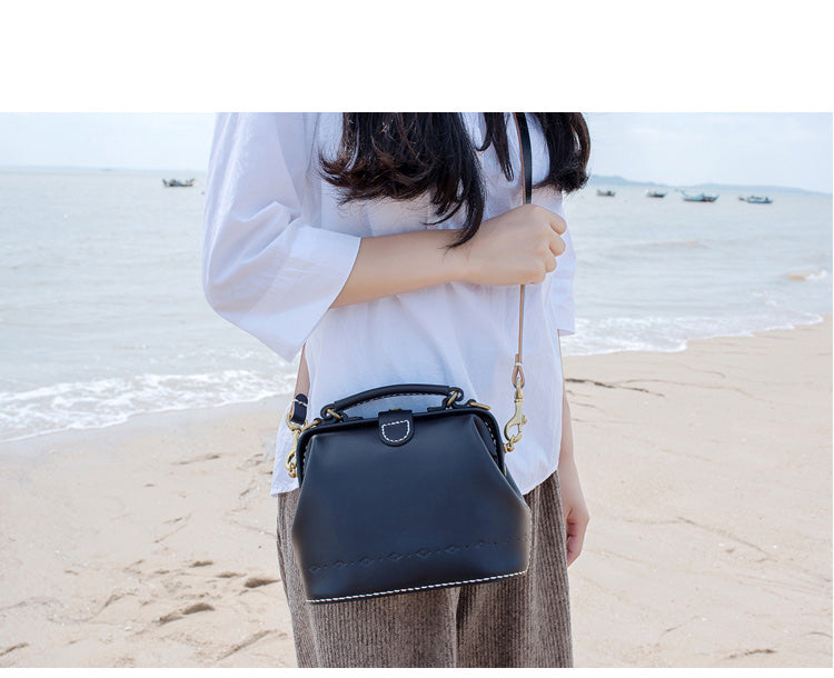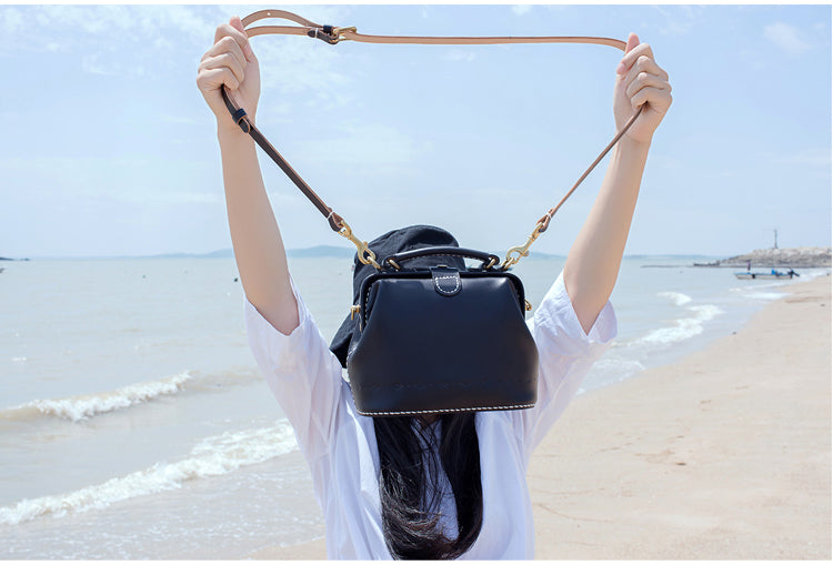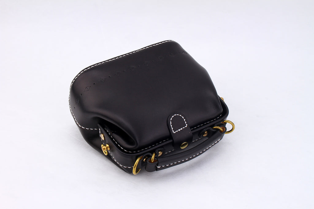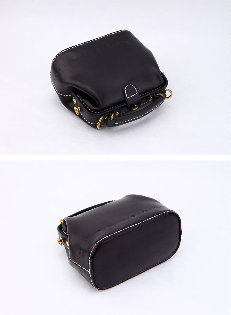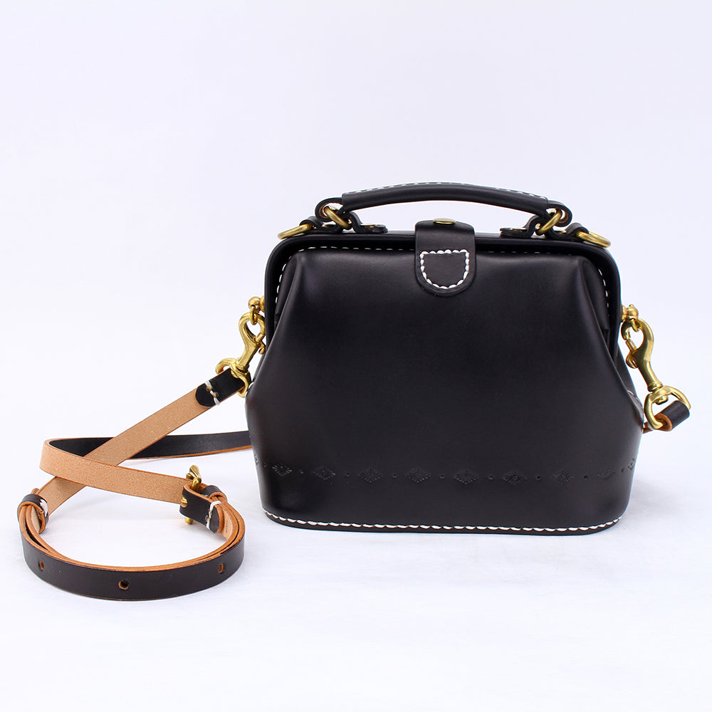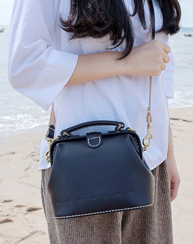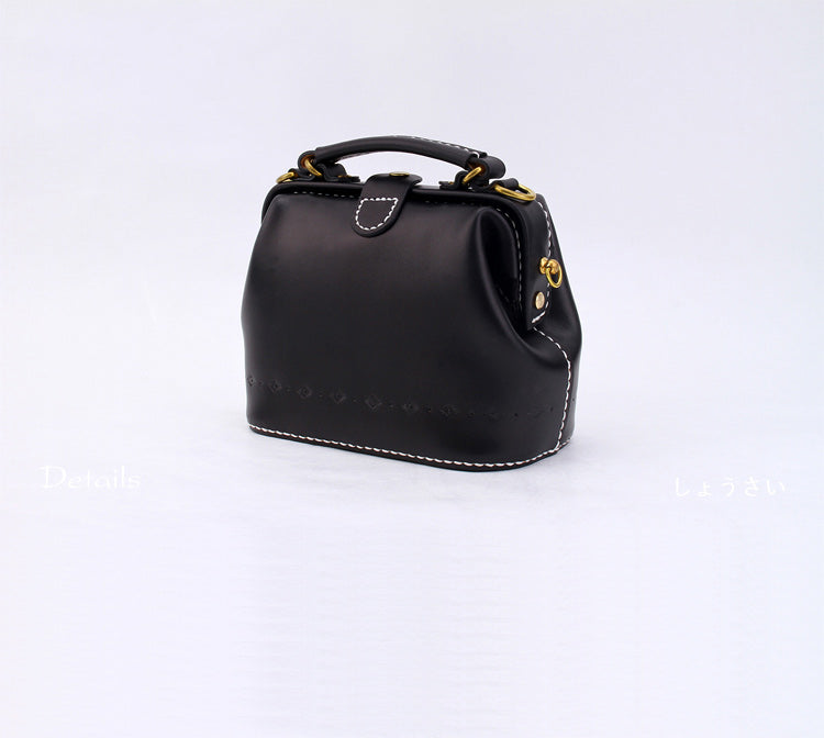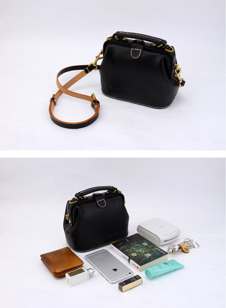 Style: Handmade Womens Black Leather Small doctor Handbag shoulder doctor bags for women