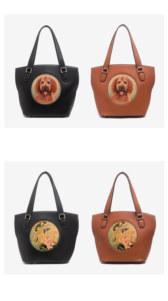 Design: Handmade Womens Brown Leather Tote Handbag Purse Dog Tote Bag for Women