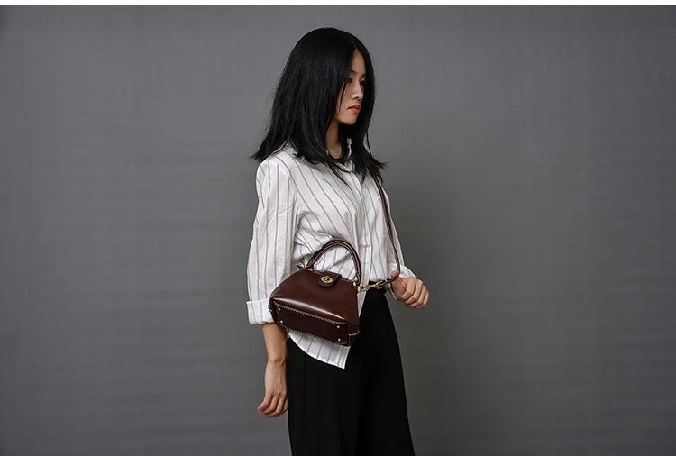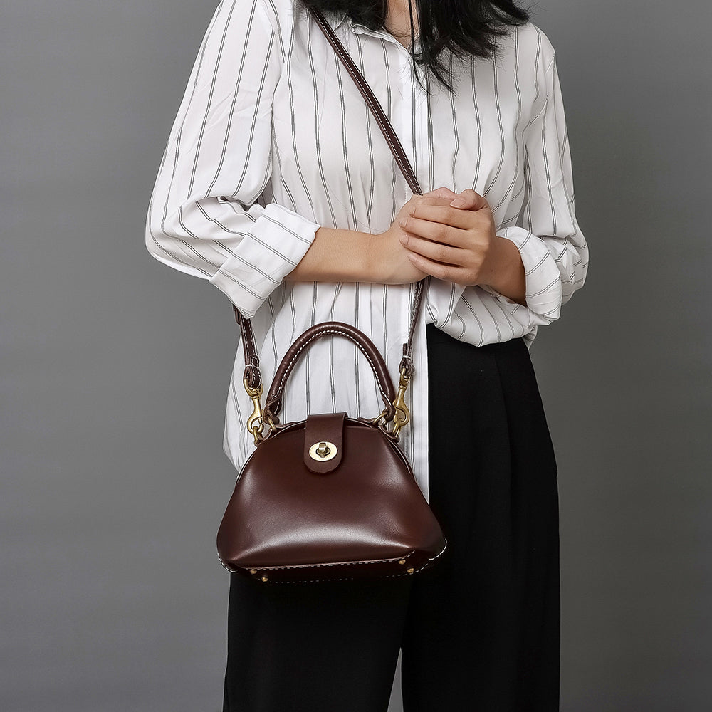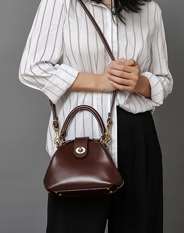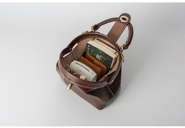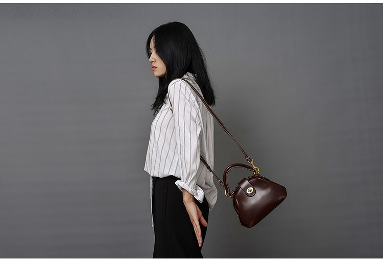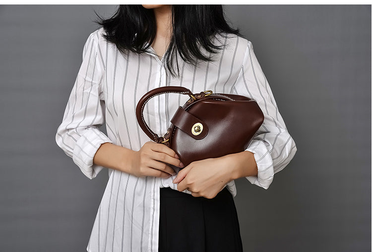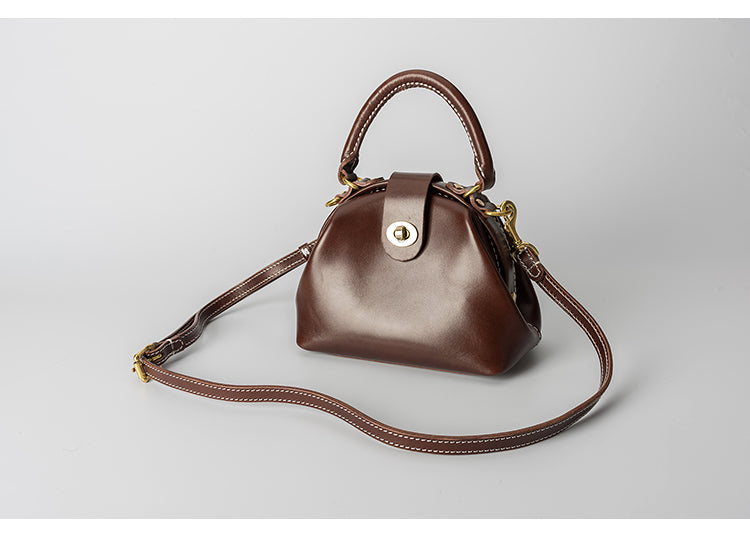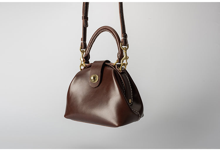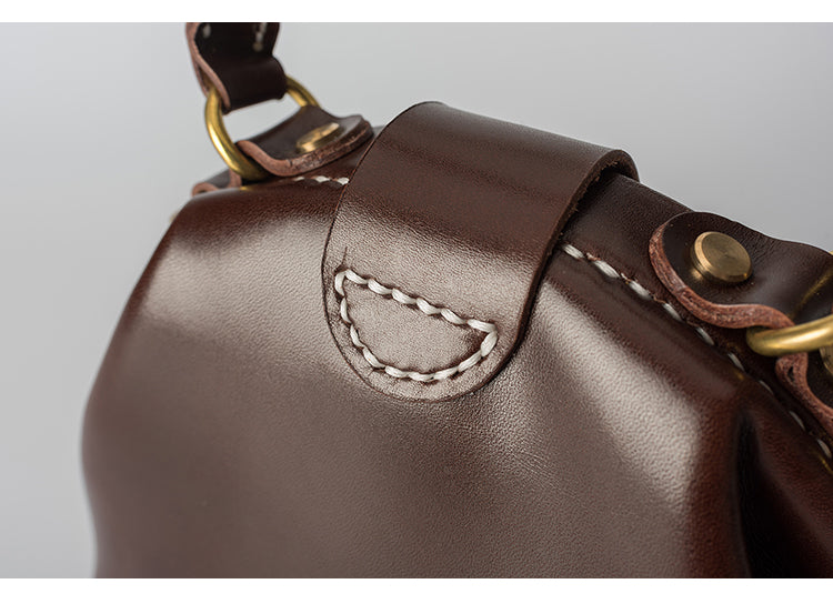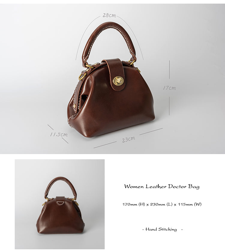Style: Handmade Womens Coffee Leather doctor Handbag Classic shoulder doctor bags Purse for women